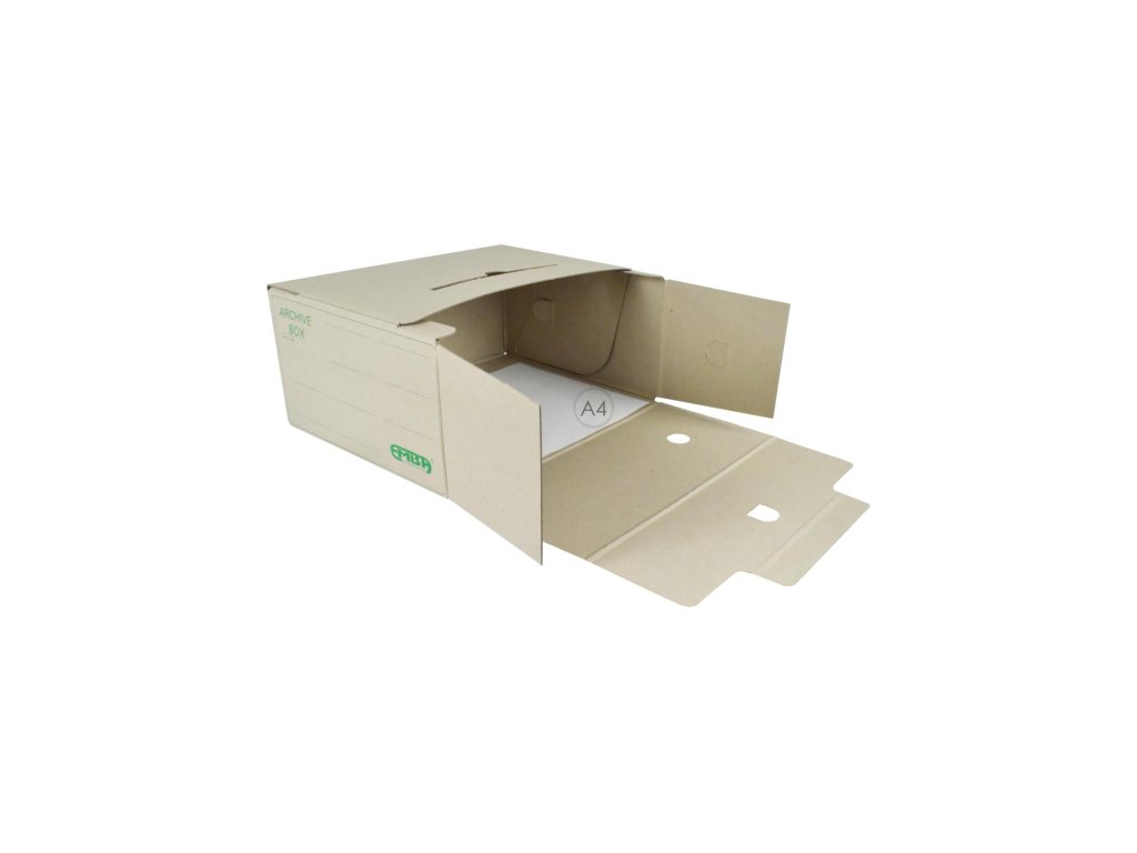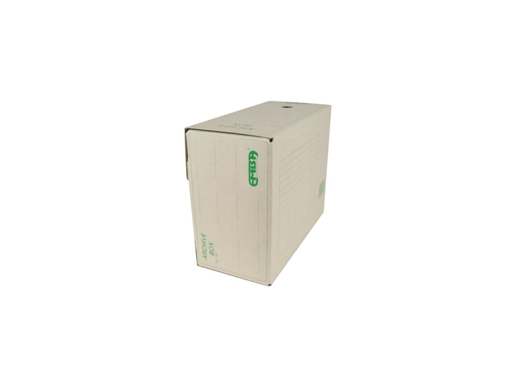Ekologický výrobok. Box z recyklovanej špeciálne impregnovanej lepenky odolnej voči atmosfeérickej vlhkosti na dlhodobé uloženie záznamov. Tri varianty postavenia, kvalitná sieťotlač. Vhodný v kombinácii so skupinovým boxom. Väčšie balenie 25 ks.Rozmery šxvxd : 150x330x260 mm