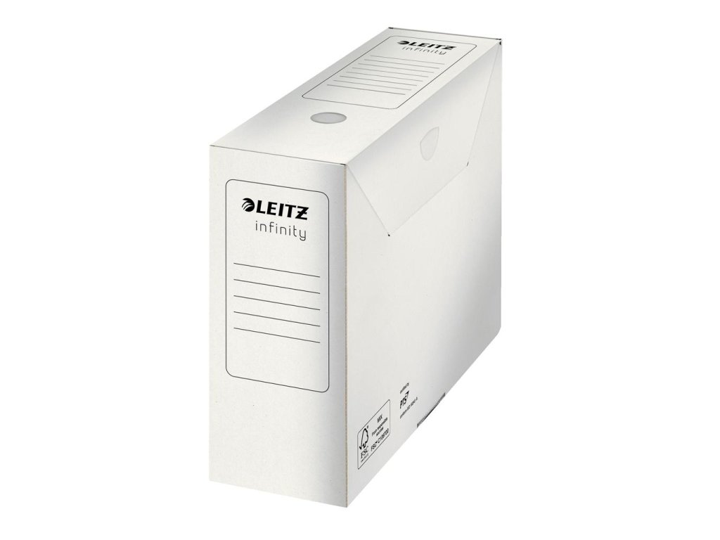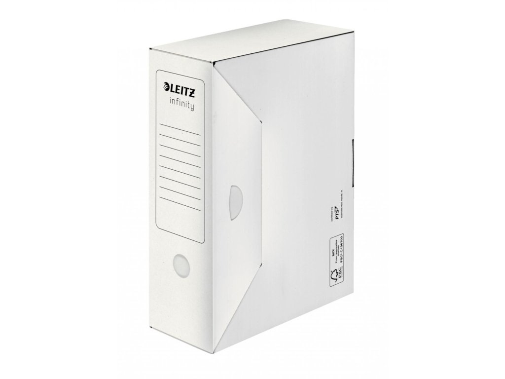 Špeciálny archivačný systém Leitz Infinity spĺňa všetky kritériá a požiadavky medzinárodnej normy ISO 16245 pre dlhodobú a náročnú archiváciu dokumentov. Je vyrobený z novo vyvinutej lepenky, ktorá je 100% acid free (alkalická).Odporúčané pre náročnú a dlhodobú archiváciu dokumentov v národných archívoch, múzeách, knižniciach aj v súkromných organizáciách. Vyrobené z lepenky, ktorá je 100% virgin, Acid Free, FREE podľa normy ISO 16245 pre ochranu dokumentov. Inovatívna konštrukcia rýchleho zloženia, ktorá šetrí čas a energiu, zložená za pár sekúnd. Dvojité bočnice chránia škatuľu pred otvorením a spevňujú okolie chrbtového úchytu. Ideálna veľkosť pre archiváciu v policiach, určené pre vertikálnu a horizontálnu archiváciu. Vďaka ľahkej vlnitej lepenke je škatuľa pevná a odolná.