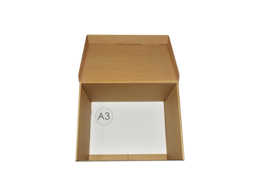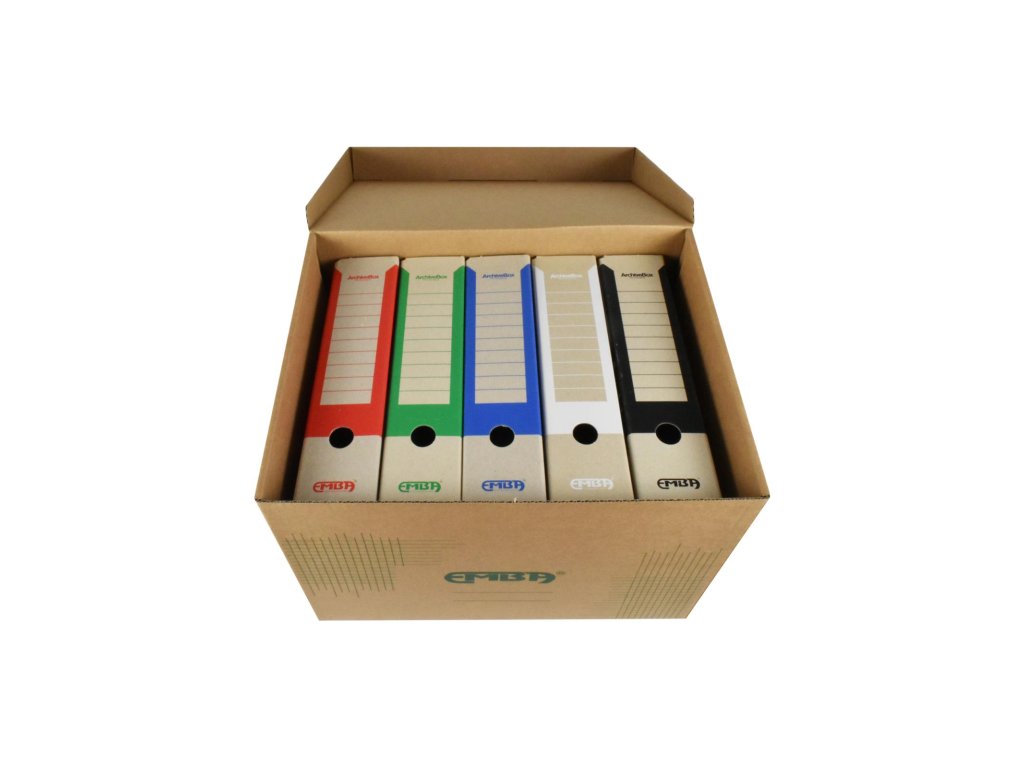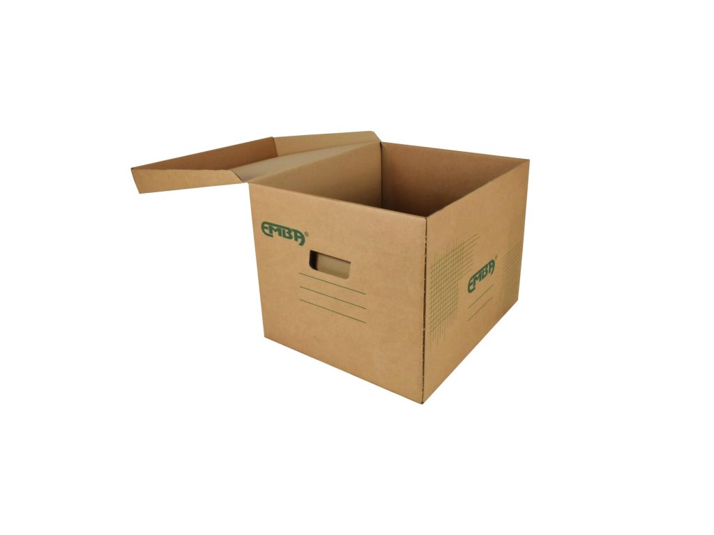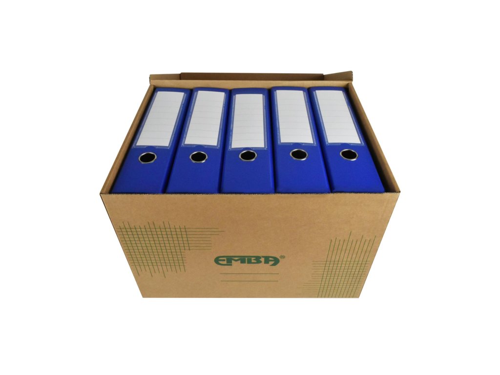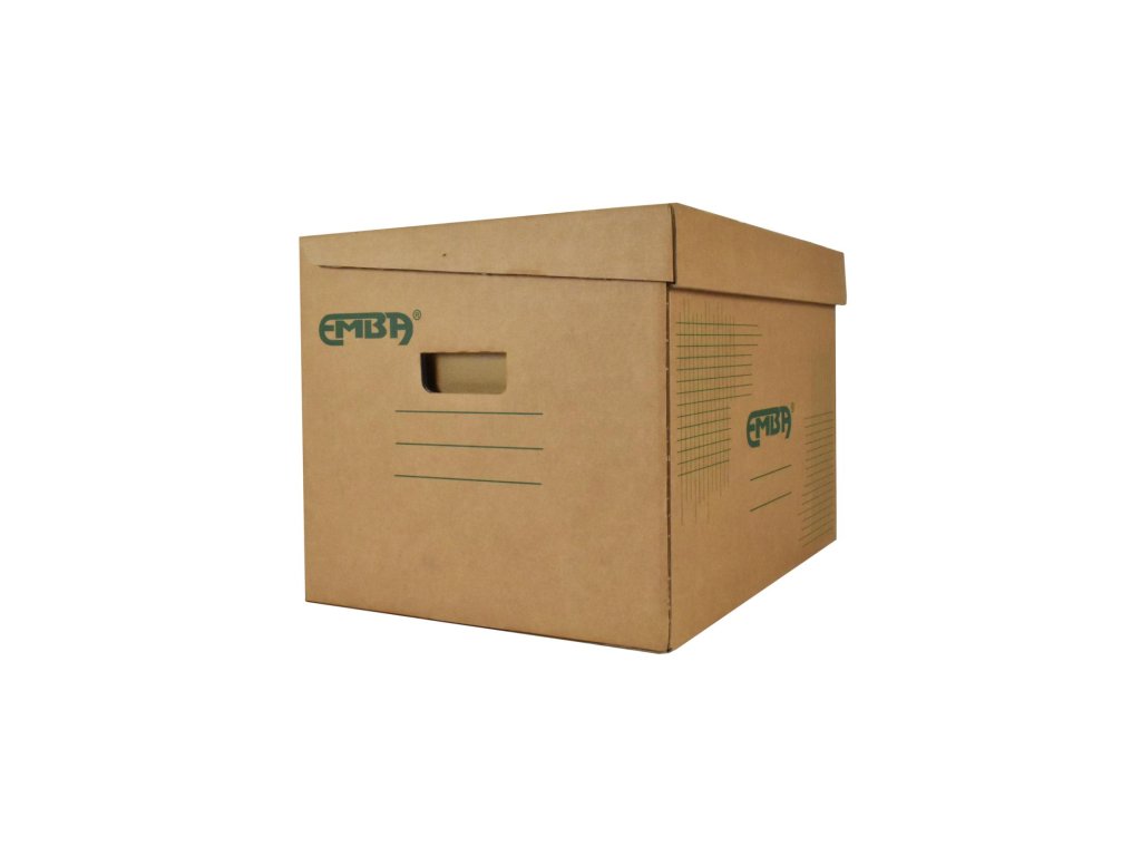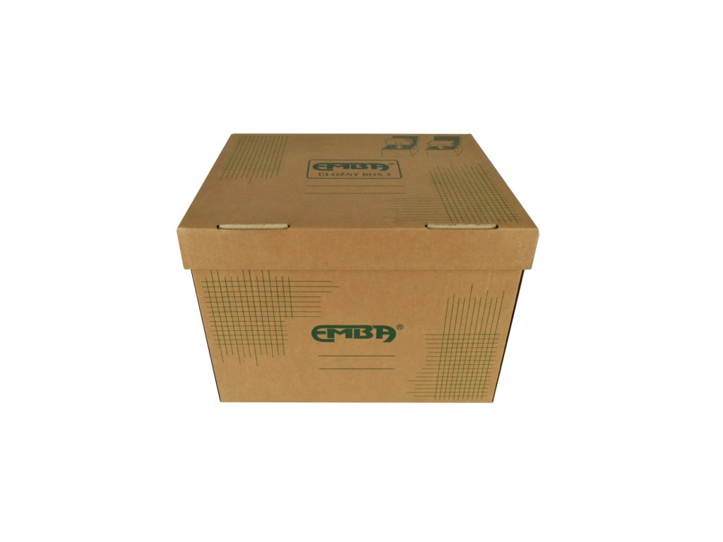 Škatuľa z hnedej vlnitej lepenky so sklápacím vekom a zelenou potlačou na ukladanie a archiváciu 5 zakladačov šírky 8 cm alebo archívnych boxov I/-75 mm. Rozmery (š x v x d) 425 x 330 x 300 mm. Nosnosť 100 Kg.Dodatočné parametre