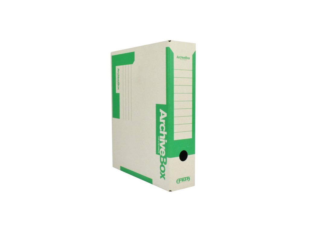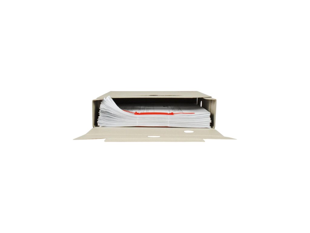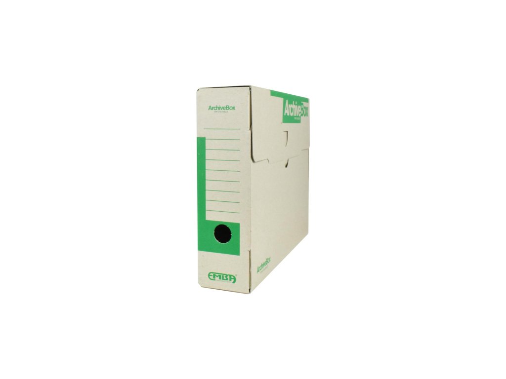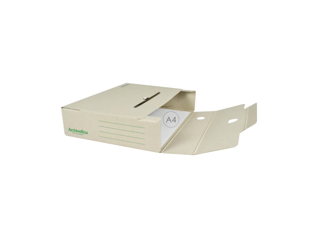 Systém archívnych boxov a škatúľ z vlnitej lepenky. Dodávané v rozloženom stave. Farba prírodná hnedá. Archívny box z hladkej ručnej lepenky, 1 000 g/ m². Konštrukčné riešenie boxu umožňuje rýchly prístup k vloženým dokumentom. Rozmery75 × 330 × 260 mm. Väčšie balenie 25 ks. Farba zelená.