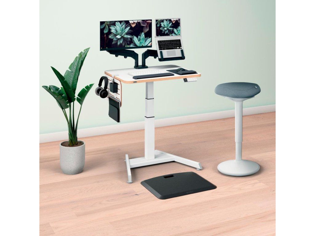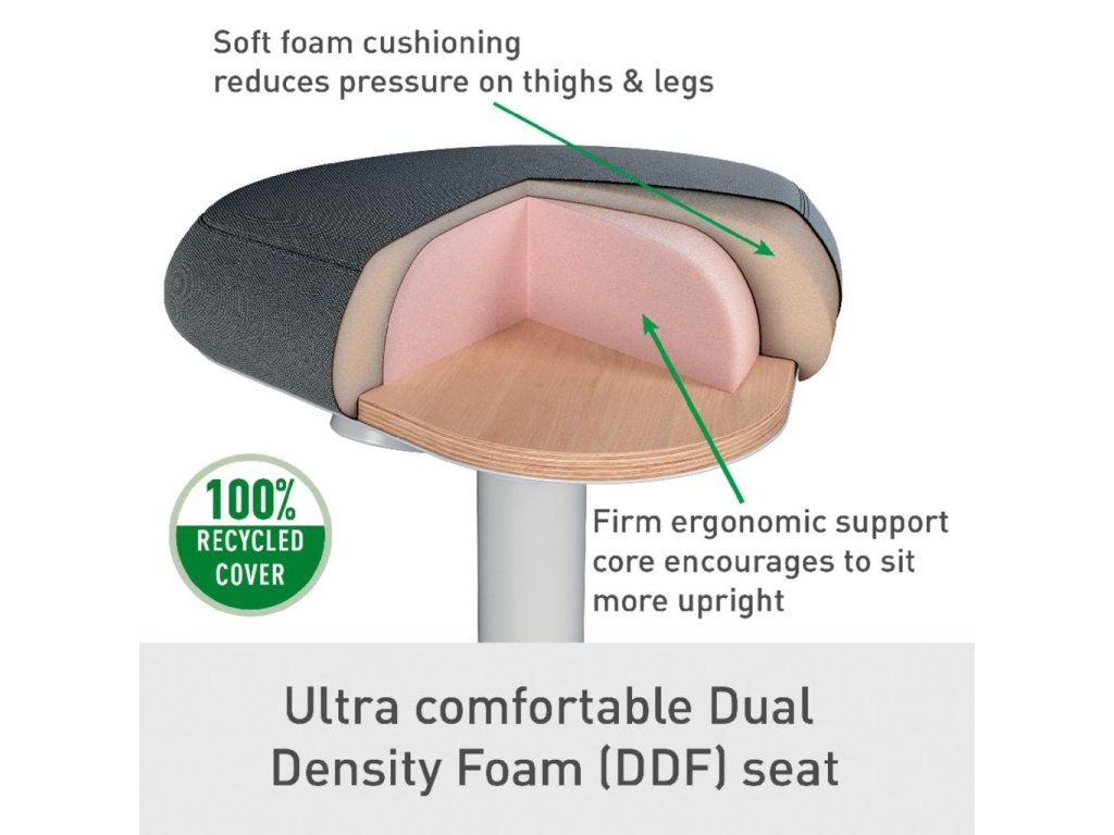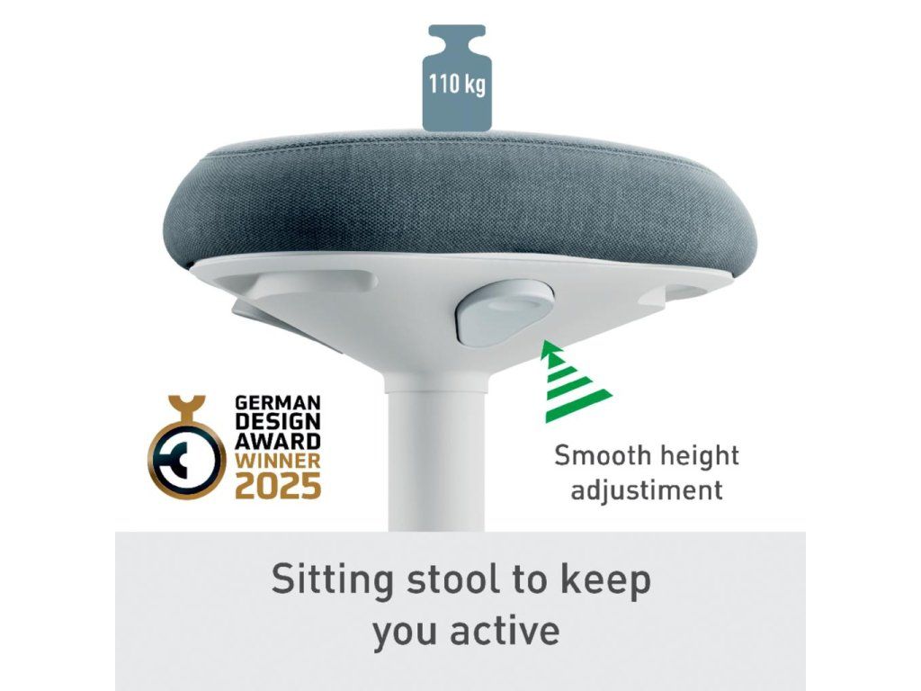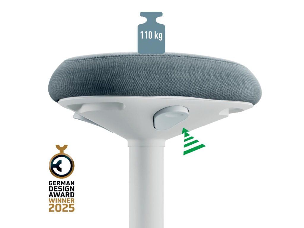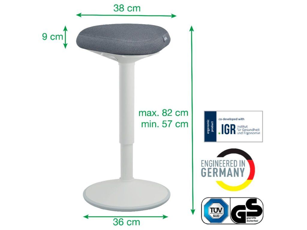 Pre perfektnú oporu v stoji pri stoloch na sedenie/st alebo pri vysokých rokovacích stoloch vďaka perfektnému výškovému nastaveniu pre každú telesnú výškuJedinečné, vysoko pohodlné a ergonomické sedadlo s penou s dvojitou hustotou; vyvinuté v spolupráci s IGR