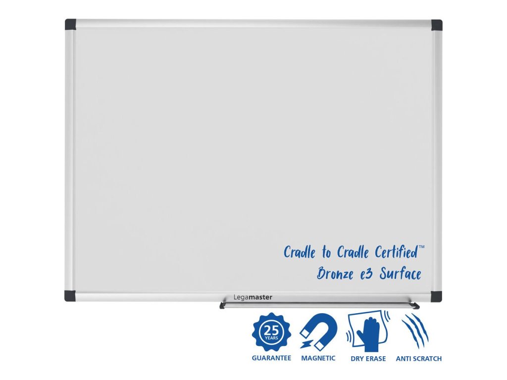 Robustná a udržateľná tabuľa na časté používanie v kancelárii, triede alebo v priemyselnom prostredí. Vhodná na písanie fixkami na tabuľu stierateľnými za sucha. Magnetický smaltovaný oceľový povrch s použitím e3 Ceramic Steel, ktorá má certifikáciu Cradle to Cradle Certified™ na úrovni bronzu. Hliníkový rám so sivými plastovými rohovými krytkami (Pantone 433C). Možno namontovať horizontálne alebo vertikálne. Vrátane držiaka popisovačov (30 cm), montážnej sady a montážneho návodu. Rozmery: 45 x 60 cm.Dodatočné parametre