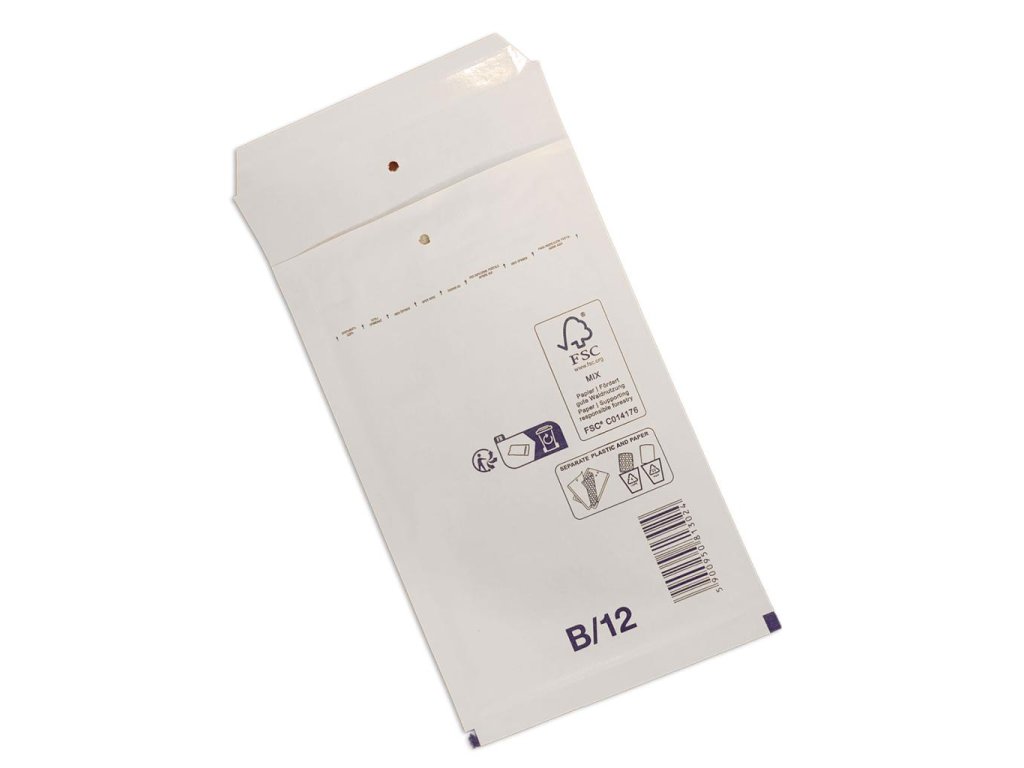Extrémne ľahké, bezpečné a hospodárne obálky. Jednoduchý spôsob balenia samolepiacim uzáverom. Vďaka špeciálnej fólii s vankúšikmi, plnenými vzduchom a papieru Kraft, potiahnutému polyetylénom, sú obálky elastické a odolné voči roztrhnutiu a vode. Farba biela. Vnútorný rozmer 12 x 21,5 cm.Kód : B12