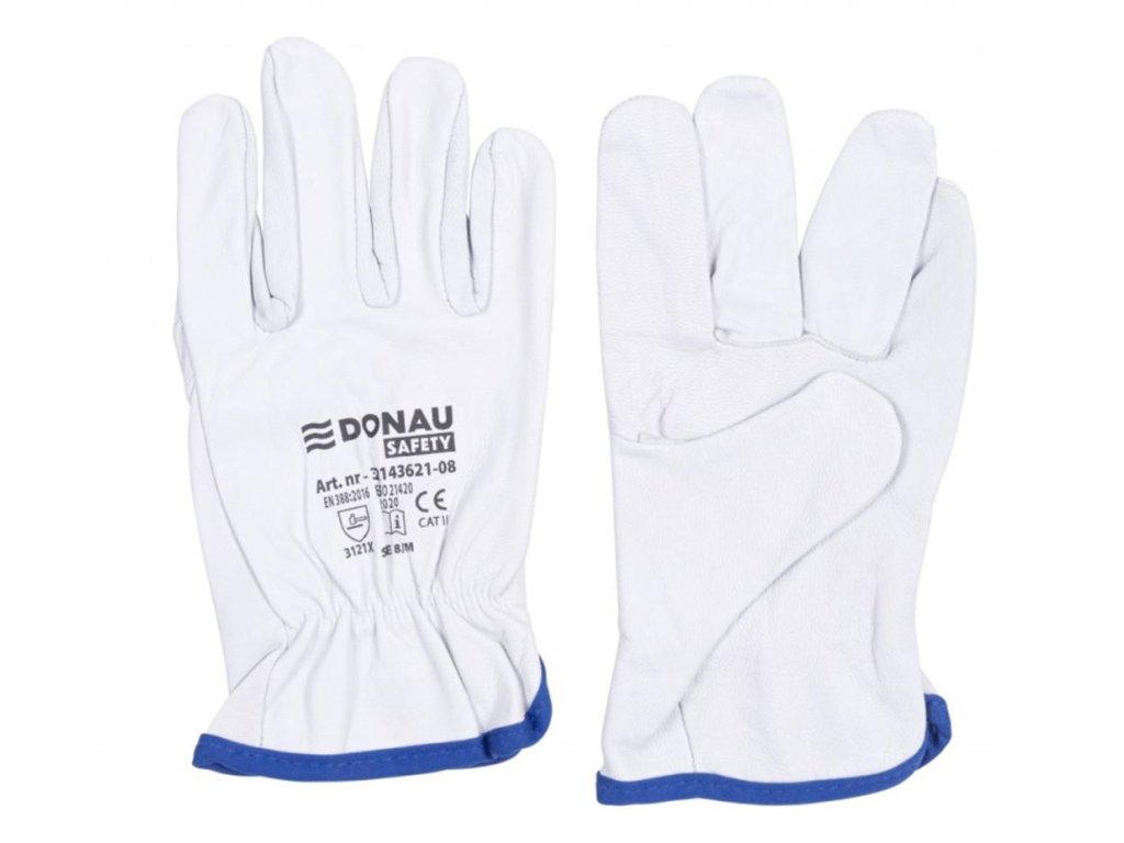 Rukavice pracovné celokoženné DONAU SAFETY biele veľ. 8/M