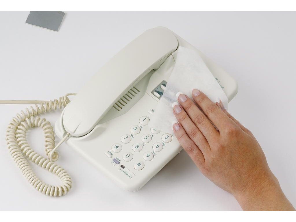 Čistiace utierky na čistenie telefónov a pevných povrchov z plastu, ako sú kryty a povrchy tlačiarní, telefónov a kancelárskeho vybavenia. Praktické balenie - dóza so 100 útržkami oddelenými perforáciou.Biologicky odbúrateľný.