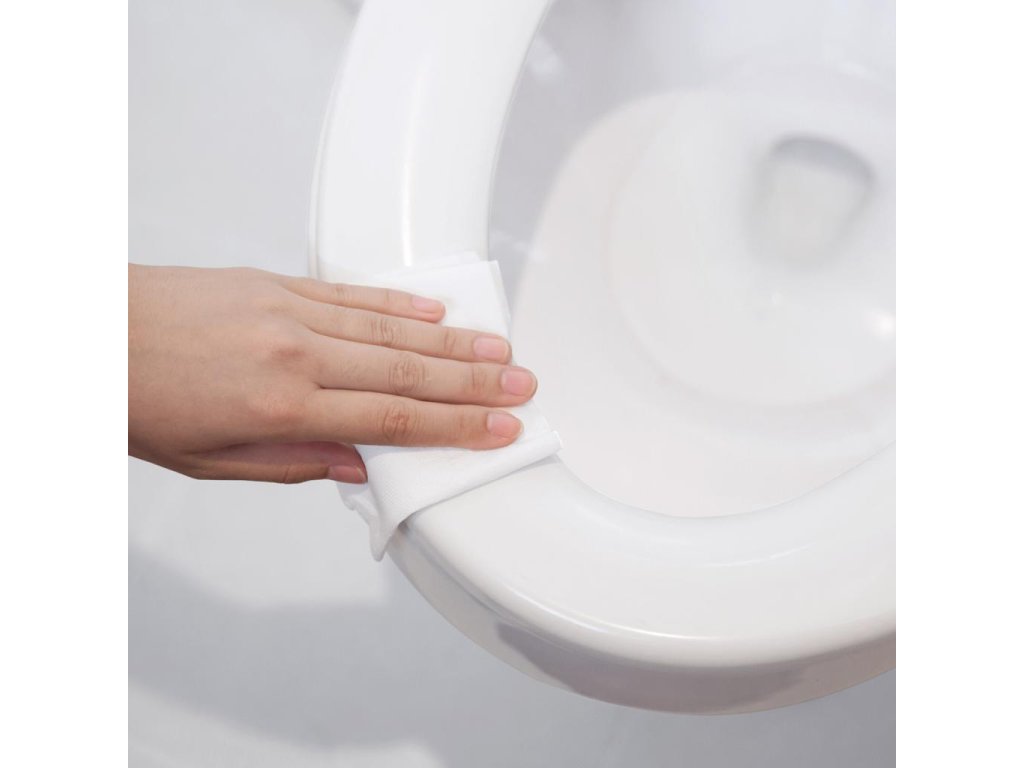 Na vyčistenie a utretie WC sedadla aplikujte na papier jednu až dve dávky. Čistiace prostriedky používajte bezpečným spôsobom. Vyhnite sa kontaktu s očami. V prípade kontaktu s očami si ich okamžite vypláchnite dostatočným množstvom vody (minimálne 10 minút) a vyhľadajte lekársku pomoc. Podrobnejšie informácie nájdete na bezpečnostnom liste.