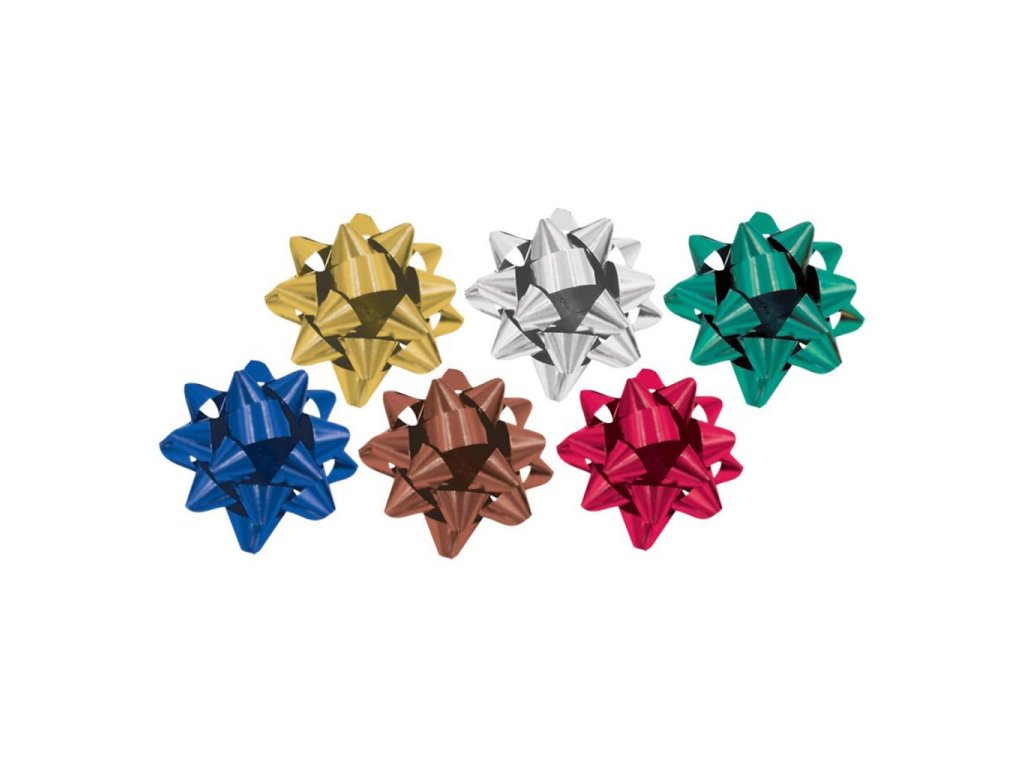 Mašľa v mixe matných metalických farieb. Ideálne pre moderné ozdobenie darčeka. Rozetka má na spodnej strane lepiacu pásku pomocou ktorej ju pripevníte na krabičku.Balenie: 50 ks
