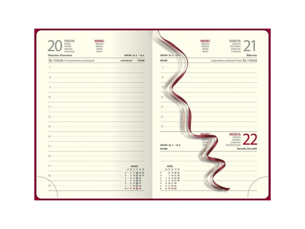 Jedinečný denný diár potiahnutý kvalitným termocitlivým poťahom. Diár je v pevnej väzbe s prednou penovou doskou, farebnou gumičkou, pútkom na pero a praktickým vreckom. Slovenské prehľadné kalendárium.Formát: 142 x 204