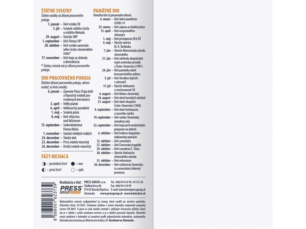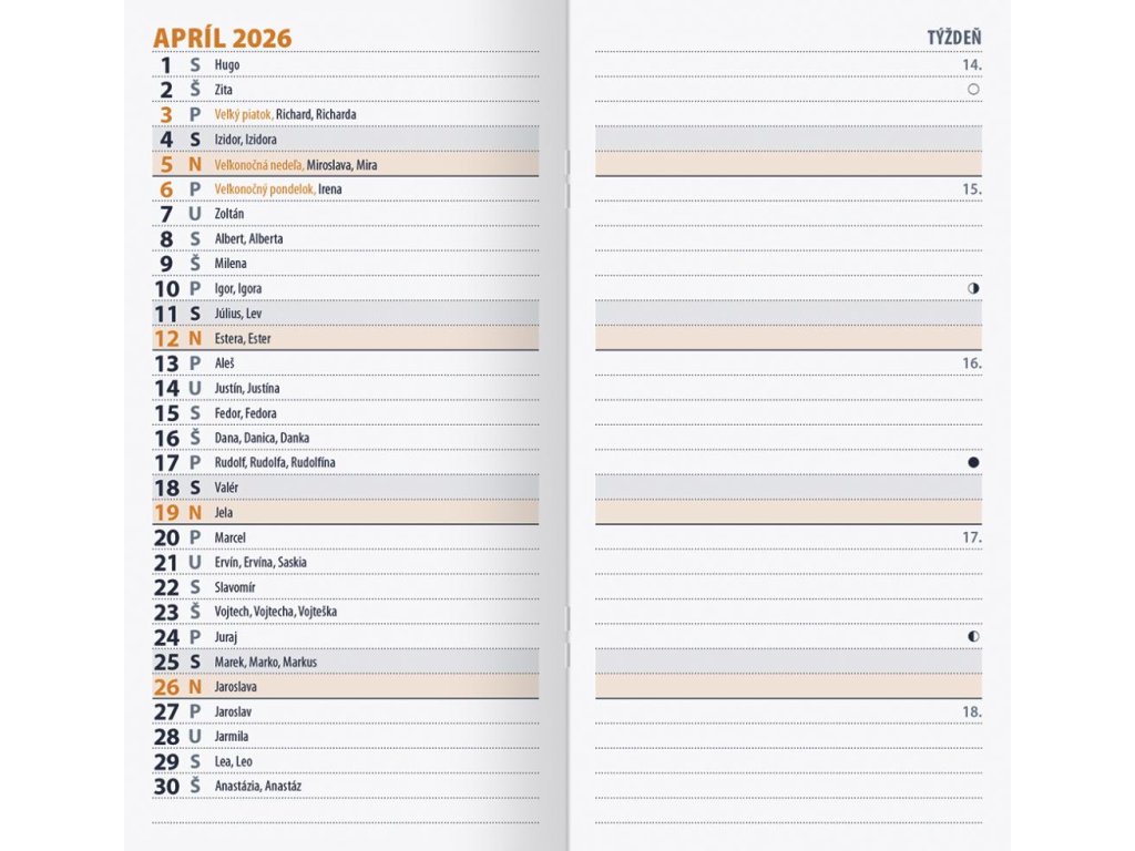 Kabelkový diár s prehľadným mesiacom na dvojstrane. V mini diári nájdete aj priestor pre písanie poznámok a pripomienok, adresár. Obsahuje slovenské mená, štátne sviatky a fázy Mesiaca.Formát: 80 × 155 mm