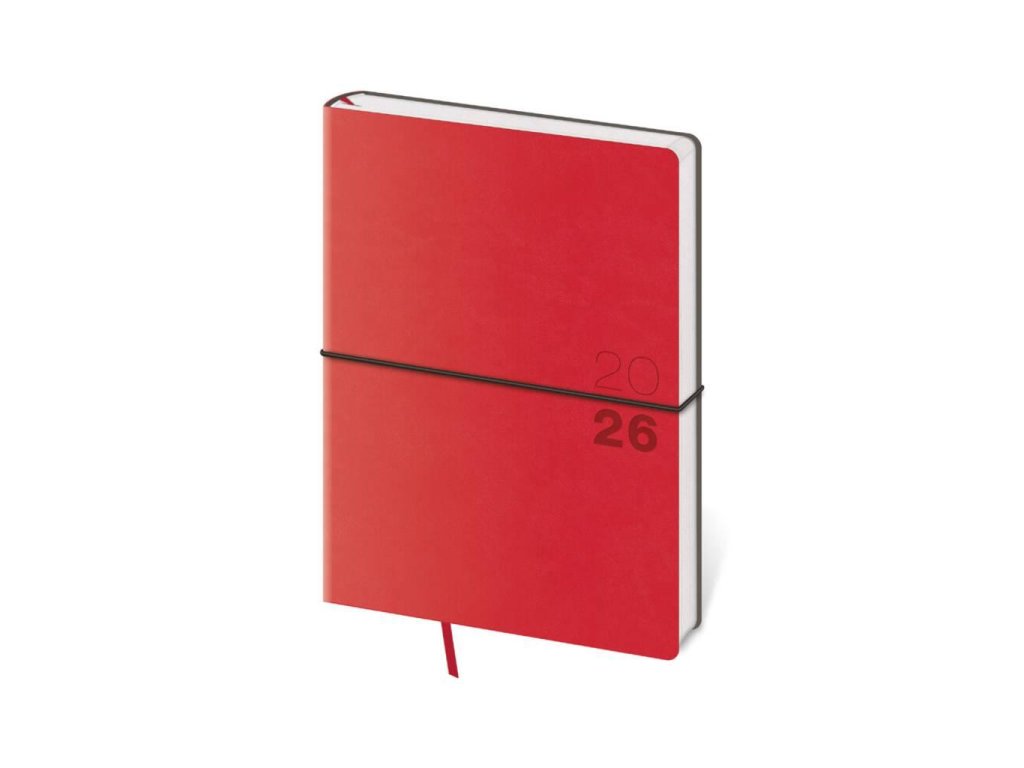 Diár týždenný A5 Flexio červený s gumičkou 2026