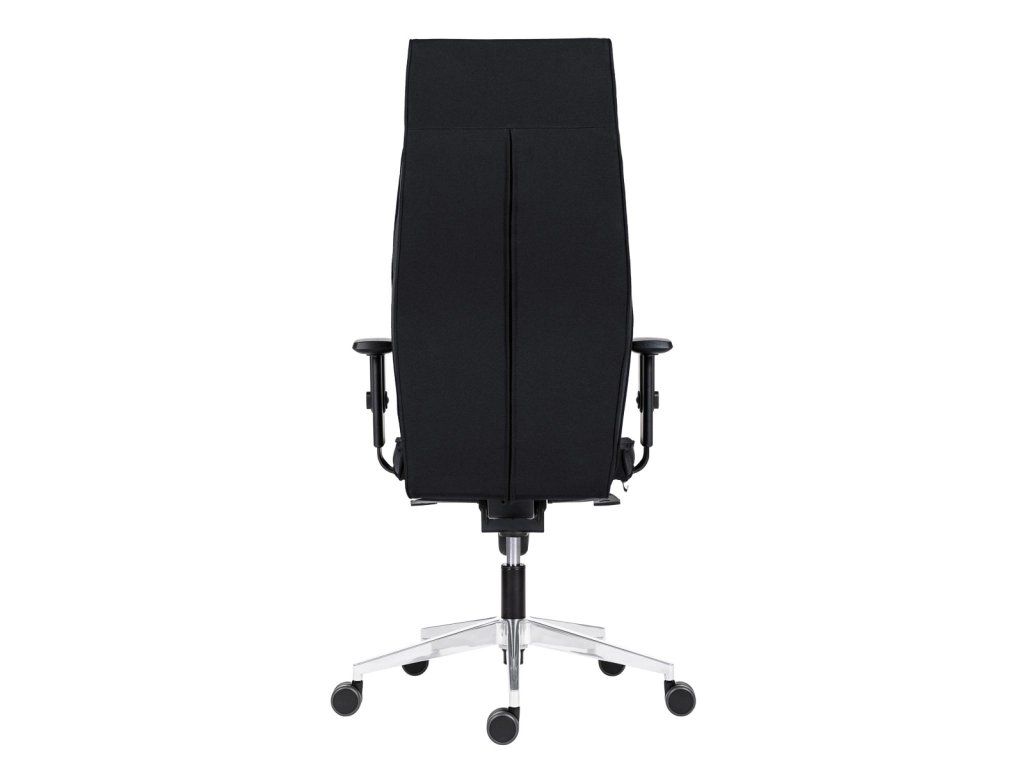Kancelárske kreslo s opierkou hlavy, výškovo nastaviteľnými podrúčkami a dopredným náklonom sedáku pre zlepšenie krvného obehu.