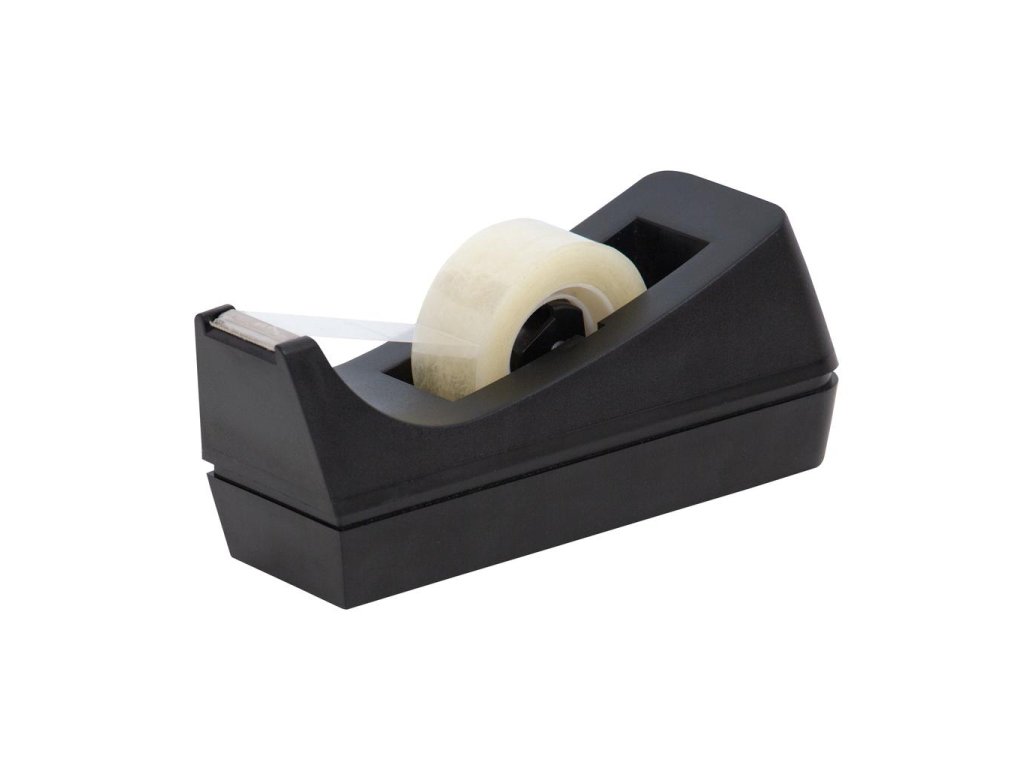 Stolový zásobník na lepiacu pásku rozmerov 19 mm × 33 m s nožom na odrezanie pásky. Dodávaný bez pásky. Farba čierna.