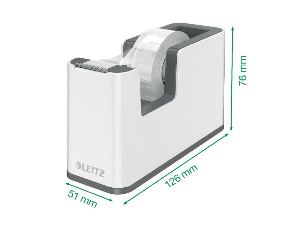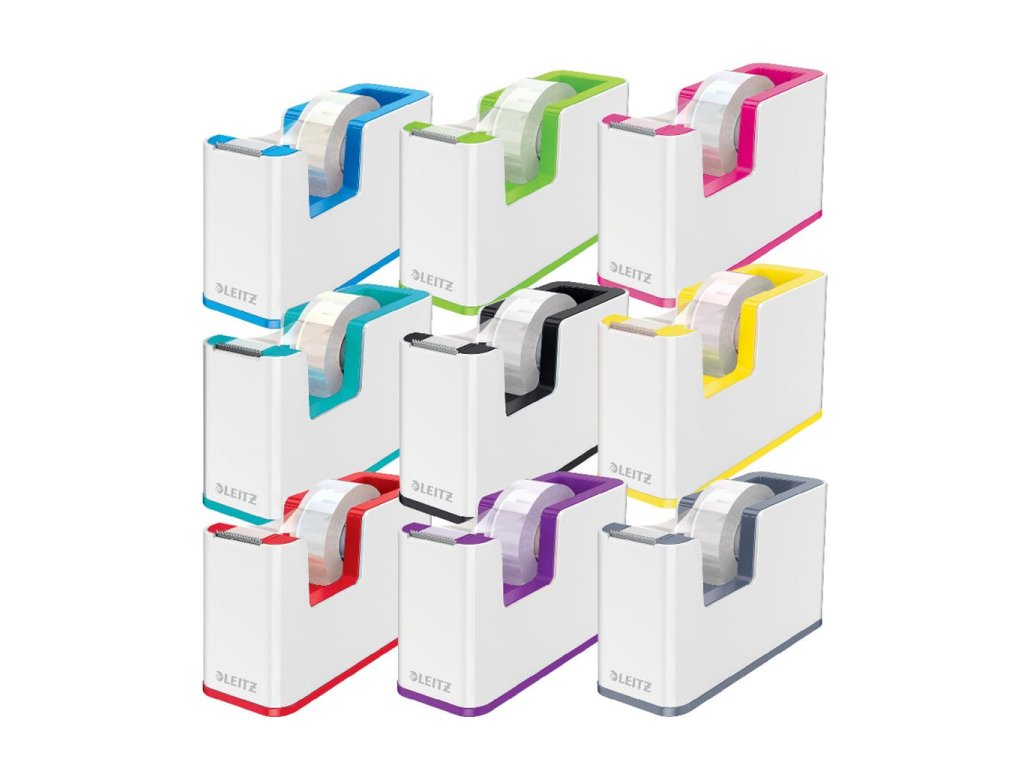 Atraktívny dispenzor s lepiacou páskou v dvojfarebnom prevedení v metalických farbách Leitz WOW s lesklým povrchom. V praktickom dizajne na pohodlné ovládanie jednou rukou. Farba biela/červená.Dodatočné parametre