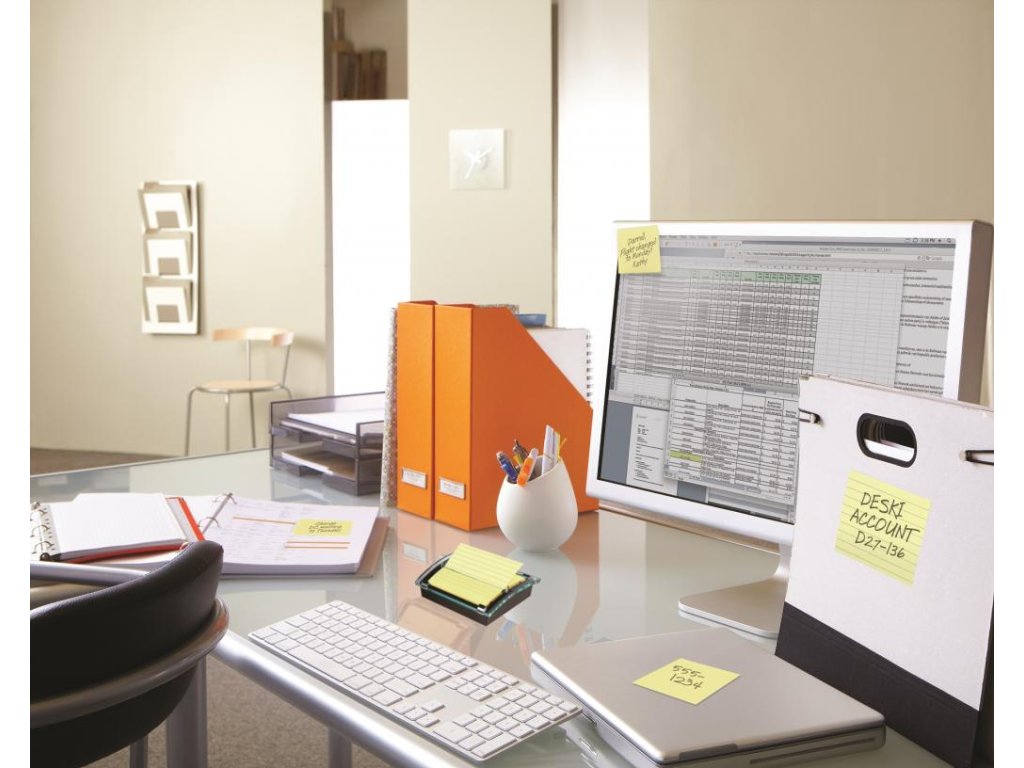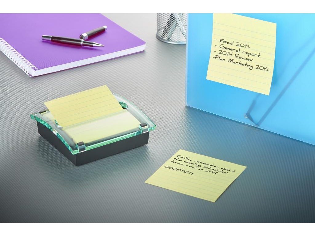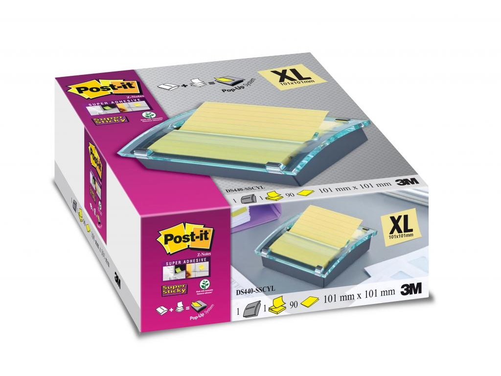 Dispenzor stolový s balením žltých liinajkových Z-bločkov Post-it Super Sticky v rozmeroch 101 x 101 mm zabezpečí jednoduchú manipuláciu a vytiahnutie lístka jednou rukou. Farba žltá. Rozmery 101 x101mm. Počet lístkov 90.•Držia pevnejšie a vydržia dlhšie.