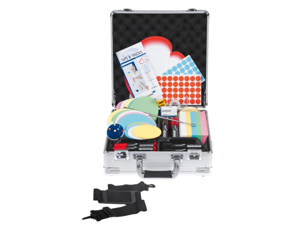 Kufor s viac ako 2 100 najpoužívanejšími workshop doplnkami vrátane teleskopického ukazovátka, popisovačov, špendlíkov a emočných kartičiek. Moderné hliníkové prevedenie s popruhom a madlom pre malú projekčnú skupinu. Kufor je uzamykateľný a dodávaný s 2 kľúčami. Rozmery 35 × 35 × 14 cm. Hmotnosť pri plnej výbave 5 kg, bez výbavy 1,8 kg.Dodatočné parametre