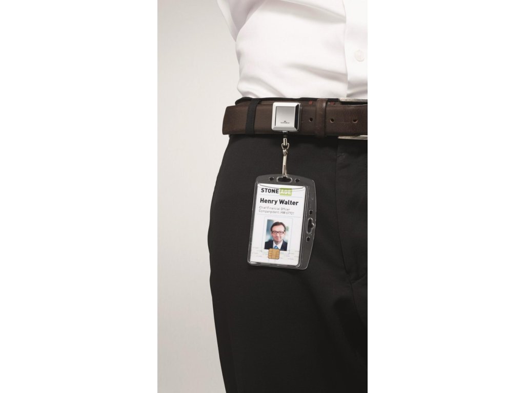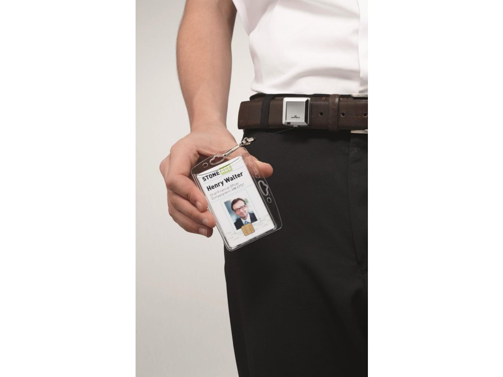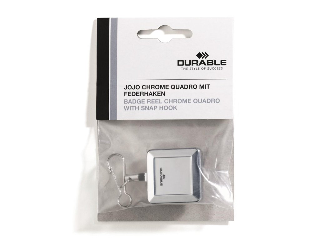Štýlový hranatý vysokokvalitný pochrómovaný kotúč so svorkou s možnosťou vysunutia do 80 cm. Vhodný na uchytenie všetkých visačiek značky DURABLE s perforáciou.Dodatočné parametre