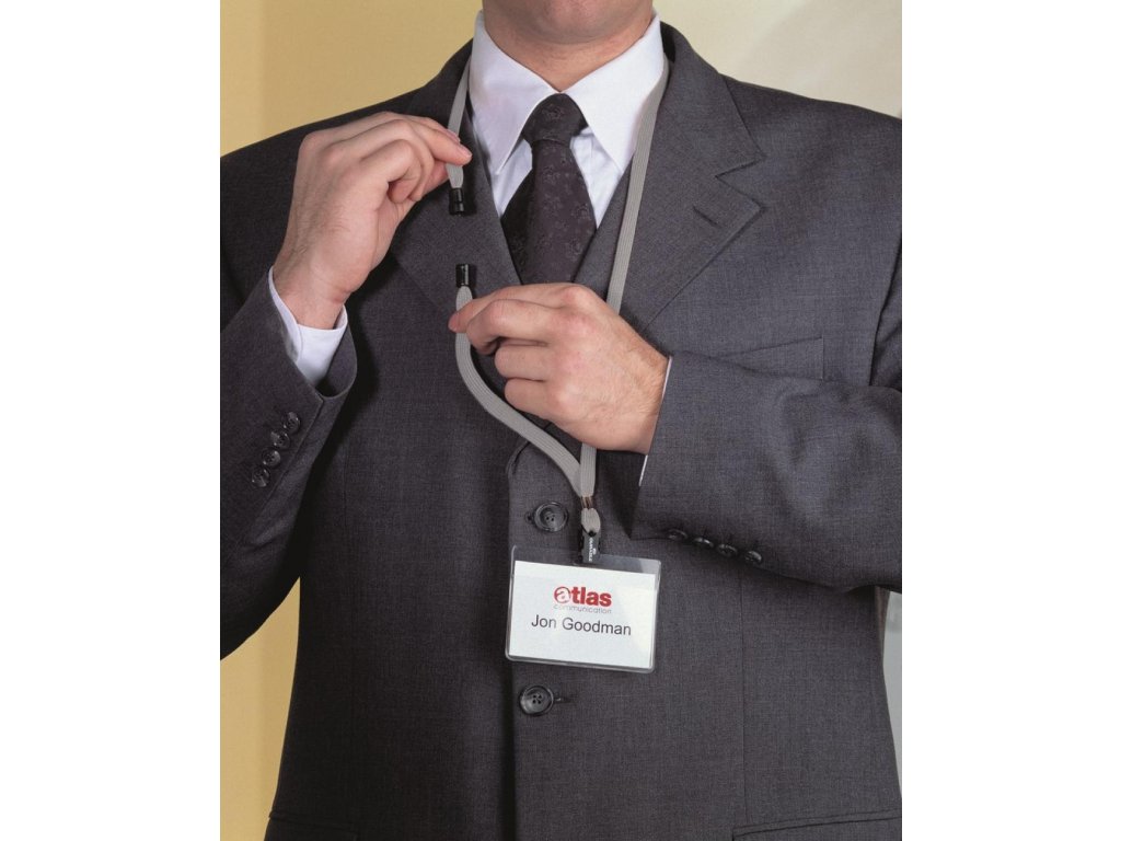 Remienok s bezpečnostnou poistkou. Poistka sa uvoľní pri zachytení remienka alebo silnom potiahnutí. Vhodný ku všetkým visačkám značky Durable. Dĺžka 44 cm, šírka 10 mm. Balenie 10 ks.Farba: sivá s potlačou DURABLE
