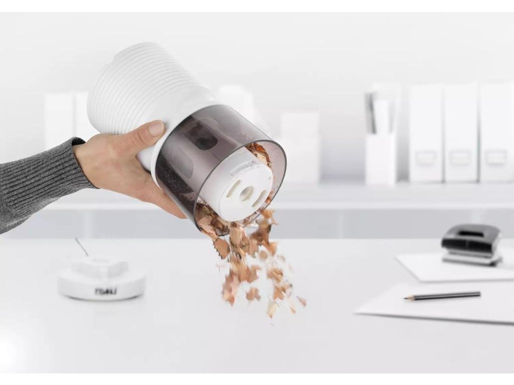 Nové elektrické strúhadlo na strúhanie takmer všetkých dostupných druhov ceruziek vrátane Jumbo ceruziek priemeru 8 až 11 mm. Otočením veka do požadovanej polohy sa nastavuje konkrétna veľkosť ceruzky, na spodnej časti sa nastavuje špica strúhaného hrotu. 4 vákuové prísavky zabezpečujú, aby sa nabíjacia stanica počas strúhania neposúvala, dokonca ani na hladkom povrchu.Odolný plastový kryt.