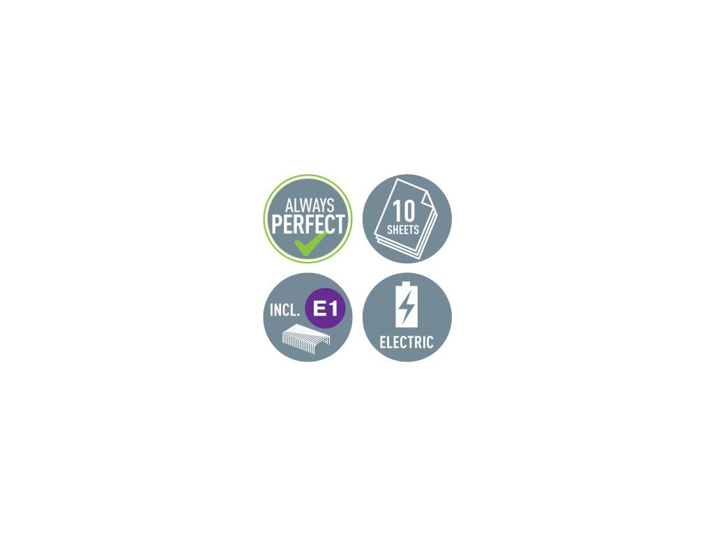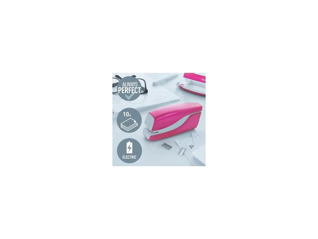 Elektrická zošívačka Leitz New NeXXt WOW. Vďaka jednoduchému ovládaniu jednou rukou je ideálna na časté používanie.