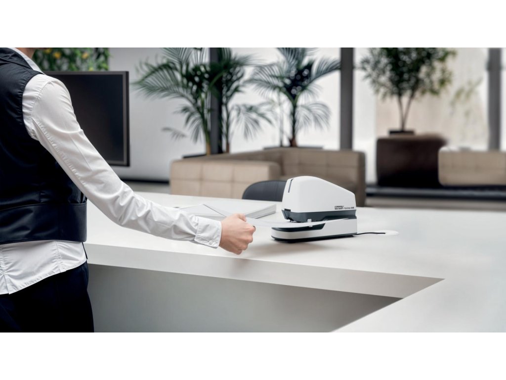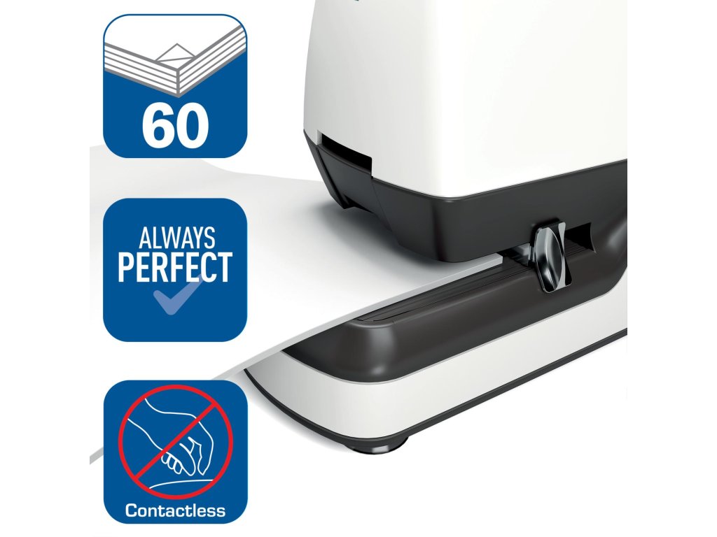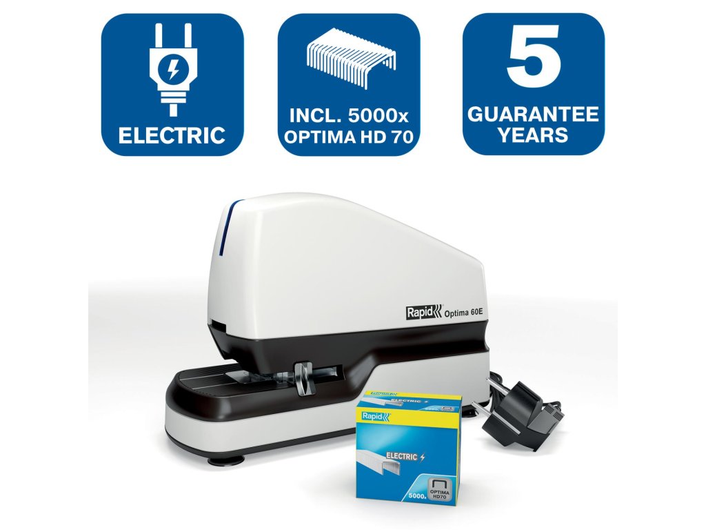 Optima 60E zabezpečí výkonné a bezproblémové zošívanie. Bez námahy zošije stoh až 60 listov papiera naraz (80 g/m2) a ušetrí váš čas doma alebo v práci. Kompaktná zošívačka so štandardným zošívaním je plnoautomatická a umožňuje hygienické zošívanie vďaka bezdotykovej prevádzke. Nastaviteľná hĺbka vkladania papiera a vodidlo na umiestnenie zošívacích sponiek umožňujú flexibilné a zároveň presné zošívanie. Vďaka LED indikátoru nízkeho počtu sponiek sa vám nestane, že bude uprostred zošívania zásobník na drôtiky zrazu prázdny. Ponúkajú zošívanie bez zasekávania sponiek. Napájanie pomocou sieťového adaptéra (je súčasťou balenia). Zároveň je pribalená aj balenie 5000 ks sponiek Optima HD70.