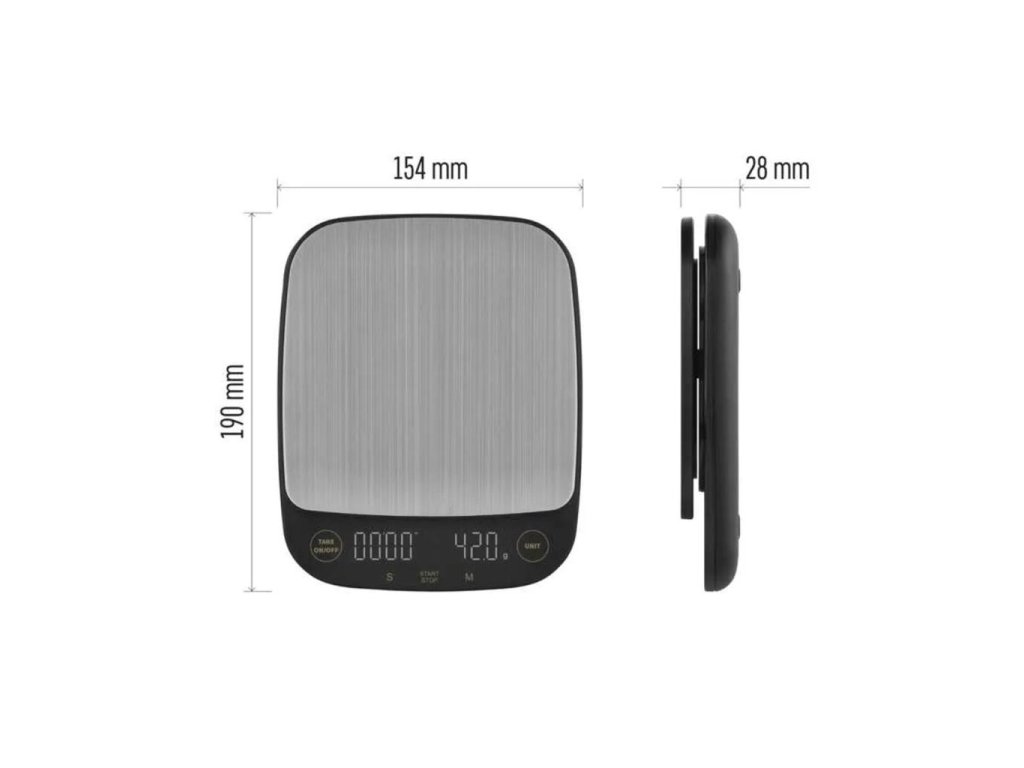 Kuchynská váha, LCD displej, podsvietený displej, povrch váhy: ABS plast + nerez, funkcia dovažovania, max. záťaž: 3 kg, presnosť váženia: 0,1 g, jednotky váhy: g, lb, oz, indikátor preťaženia, automatické vypnutie: po 1 minúte, indikácia slabých batérií, farba: čierna, napájanie: 3× 1,5 V AAA (súčasťou balenia), rozmer: 154 × 28 × 190 mm, predajný obal: 1 ks,, záručná doba: 2 rokyDodatočné parametre
