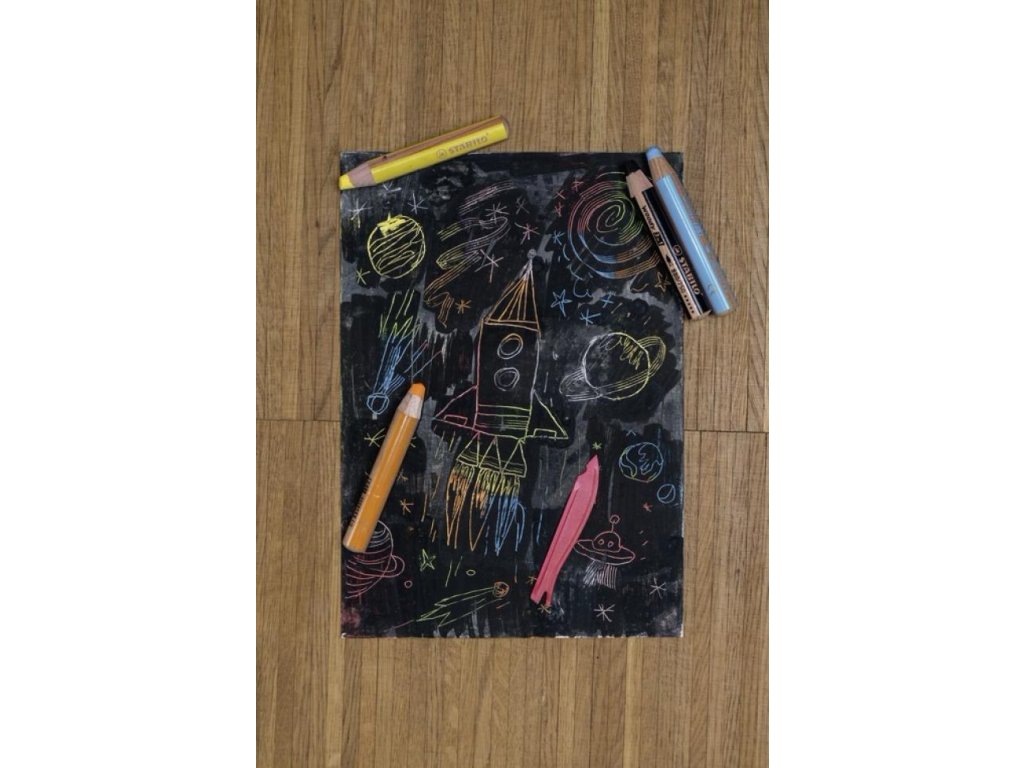 STABILO Woody 3 v 1 je multifunčkná farbička, vodovka a voskovka v jednom, ktorá vie kresliť na papier, na tmavý podklad, kartón, sklo, kov, drevo alebo trebárs aj na gumáky. Ozdobiť si drevený rámik, okno, chlebník alebo plechovku na ceruzky je hračka. Deti ju milujú a rodičia môžu zostať v pokoji, pretože farbu možno z ručičiek aj z hladkého povrchu dobre zmyť vodou s mydlom alebo saponátom. Tuha obsahuje osemkrát viac farby než bežná farbička, nemožno ju zlomiť a hodí sa na extra dllllllllhé kreslenie a na veľké umelecké diela: vďaka hrubej tuhe je možné všetko rýchlo vyfarbiť. Vďaka svojmu tvaru padne woody výborne do detskej ručičky. K dostaniu je 18 atraktívnych farieb, vrátane zlatej a striebornej. Zakúpiť sa dá v baleniach alebo jednotlivo. XXL tuha je uložená v tele, ktoré je vyrobené z dreva certifikovaného PEFC® (PEFC/04-31-1728) a je teda šetrná k životnému prostrediu.Vitajte v sekcii Stabilo na mojepapiernictvo.sk!