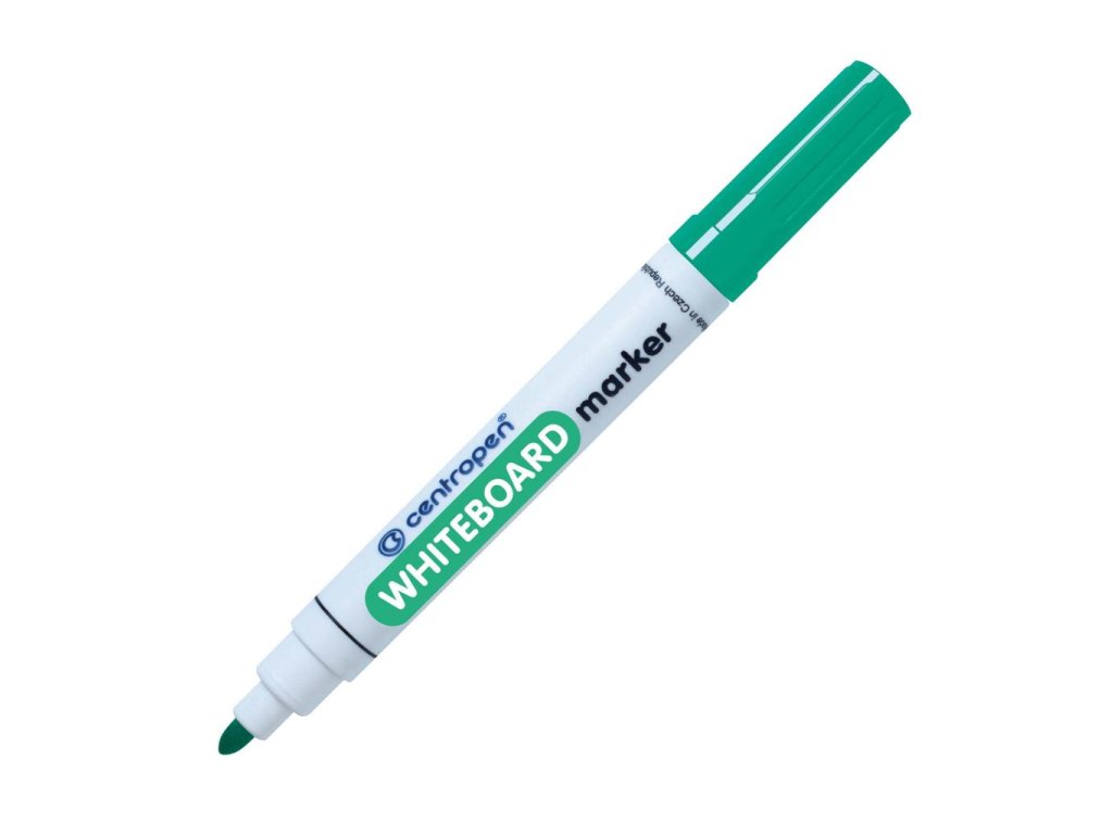 Za sucha stierateľný svetlostály popisovač. Vhodný na biele smaltované tabule, PVC, sklo, porcelán. Okrúhly hrot hrúbky 5 mm. Šírka stopy 2,5 mm. Väčšie balenie 10 ks.Farba: zelená