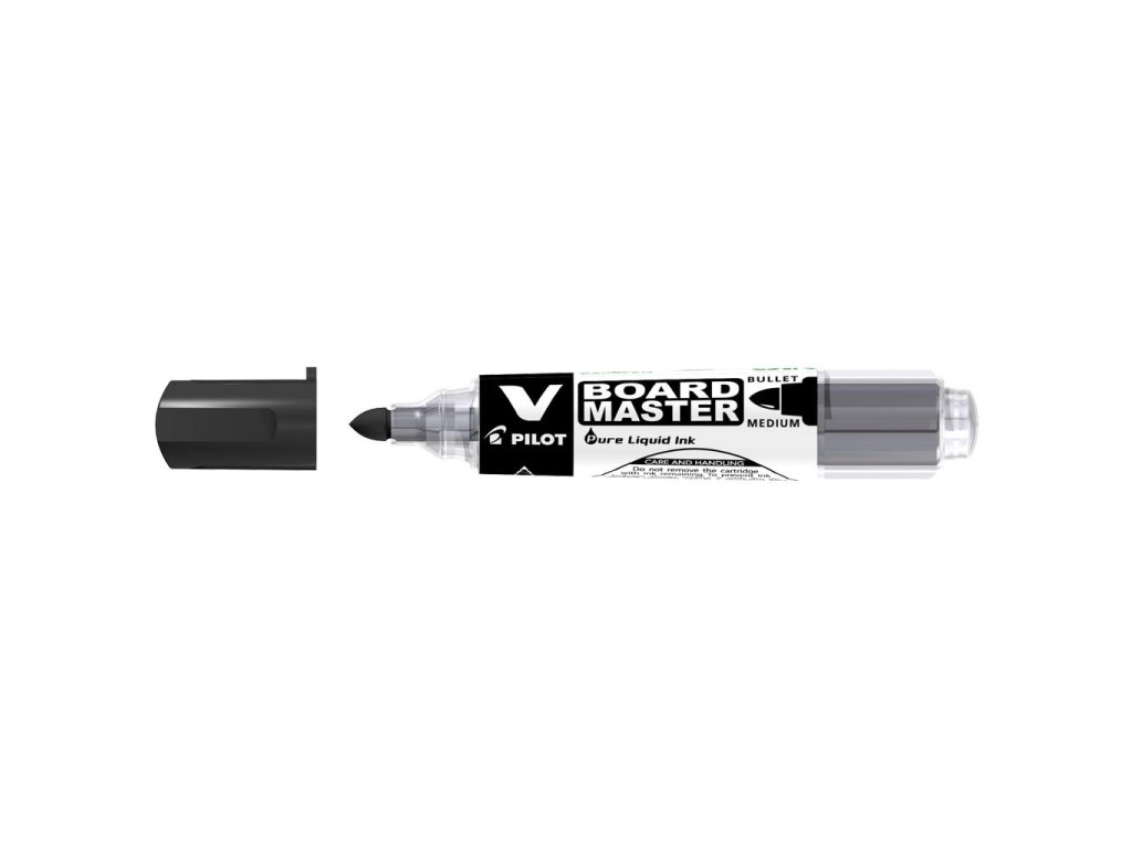 Popisovač na biele tabule s vymeniteľnou náplňou na alkoholovej báze. Priemer hrotu 6 mm, šírka stopy 2,3 mm. Farba čierna.