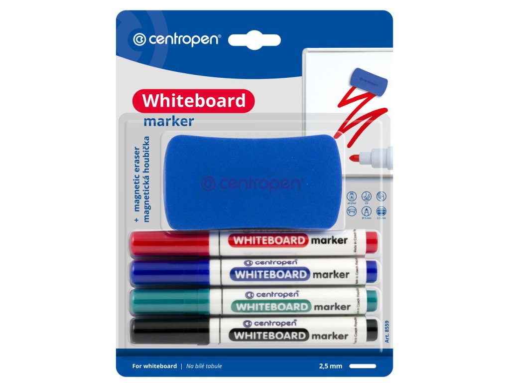 Sada popisovačov na tabule Centropen 8559/4S so stierkou