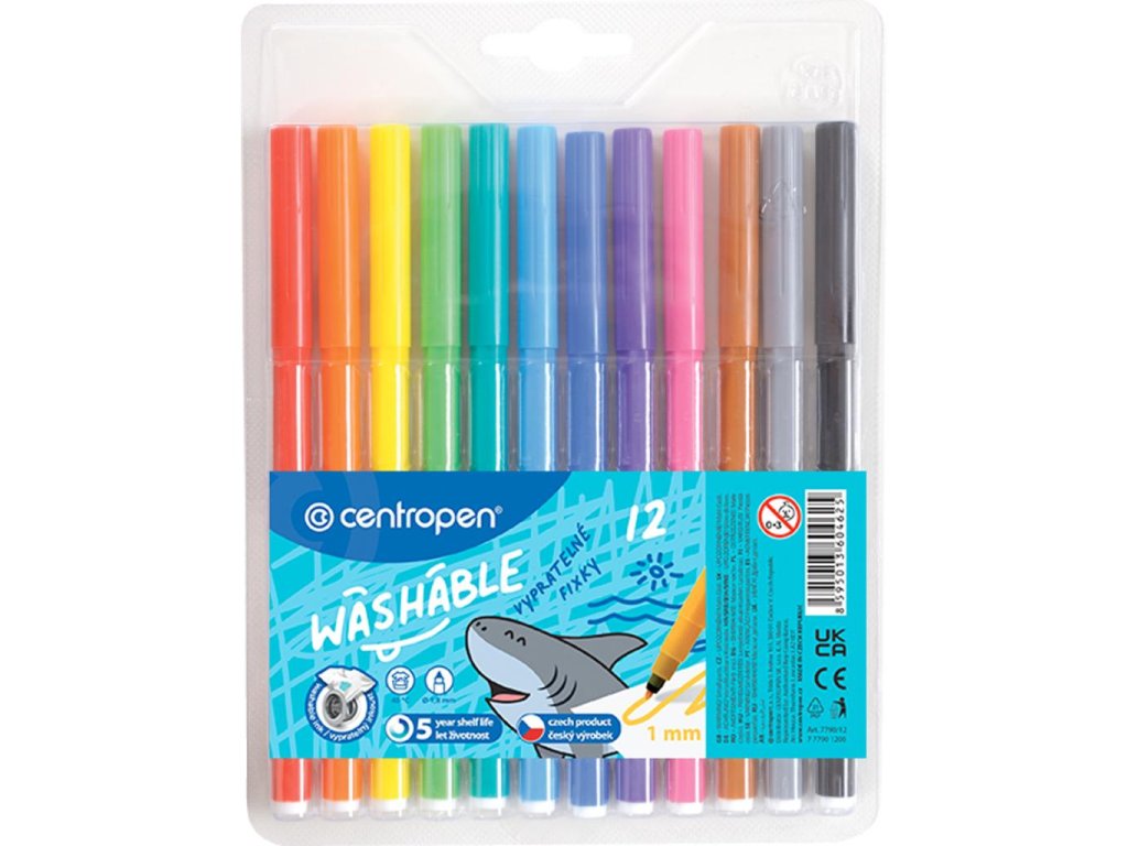 Popisovač vyrobený z PP s ventilačným bezpečnostným uzáverom a vláknovým hrotom odolným voči zatlačeniu. Šírka stopy 1,8 mm. Dodávaný v sade 12 farieb.Farba: sada 12 ks