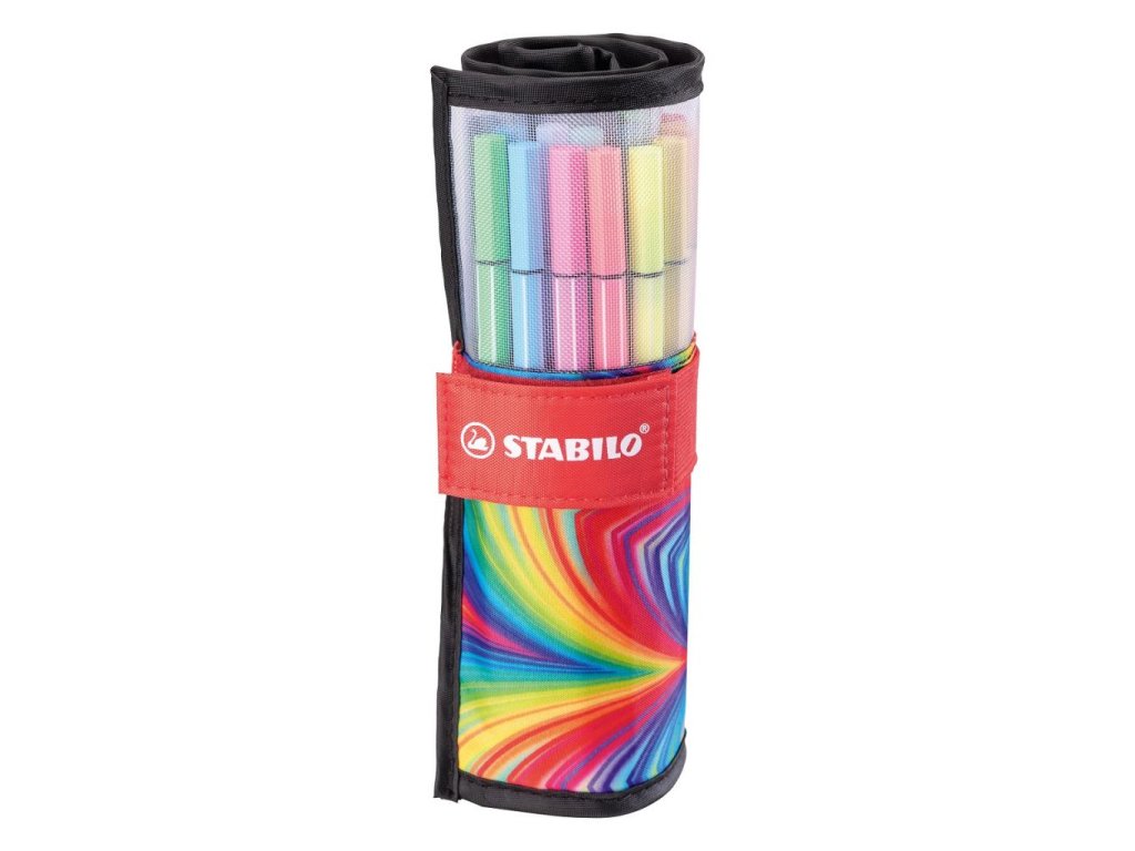 STABILO Pen 68 sľubuje nekonečnú tvorivosť - nečudo, že sa STABILO Pen 68 perfektne hodí k súčasným trendom v oblasti bullet journal, poznámok, skicovani a alebo hand lettering. Ale aj fanúšikovia mandál či priatelia maľovania a kreslenia sú nadšení zo všestrannosti kvalitného „vlákna“. Kreatívni a (hobby) umelci milujú veľkú rozmanitosť, s ktorou je možné farebne zrealizovať každý nápad. Robustný hrot zaručuje rovnomerné rozloženie farby a je ideálny na kreslenie hrubších línií a vypĺňanie prázdnych oblastí. Pen 68 vás svojím výkonom naozaj prekvapí - 24 hodín bez vrchnáčika, vodou rozmývatelná náplň na vodnej báze bez zápachu, vysoko jasné a žiarivé farby. Pre fanúšikov orientovaných na životný štýl je tu Rollerset v cool dizajne ARTY.