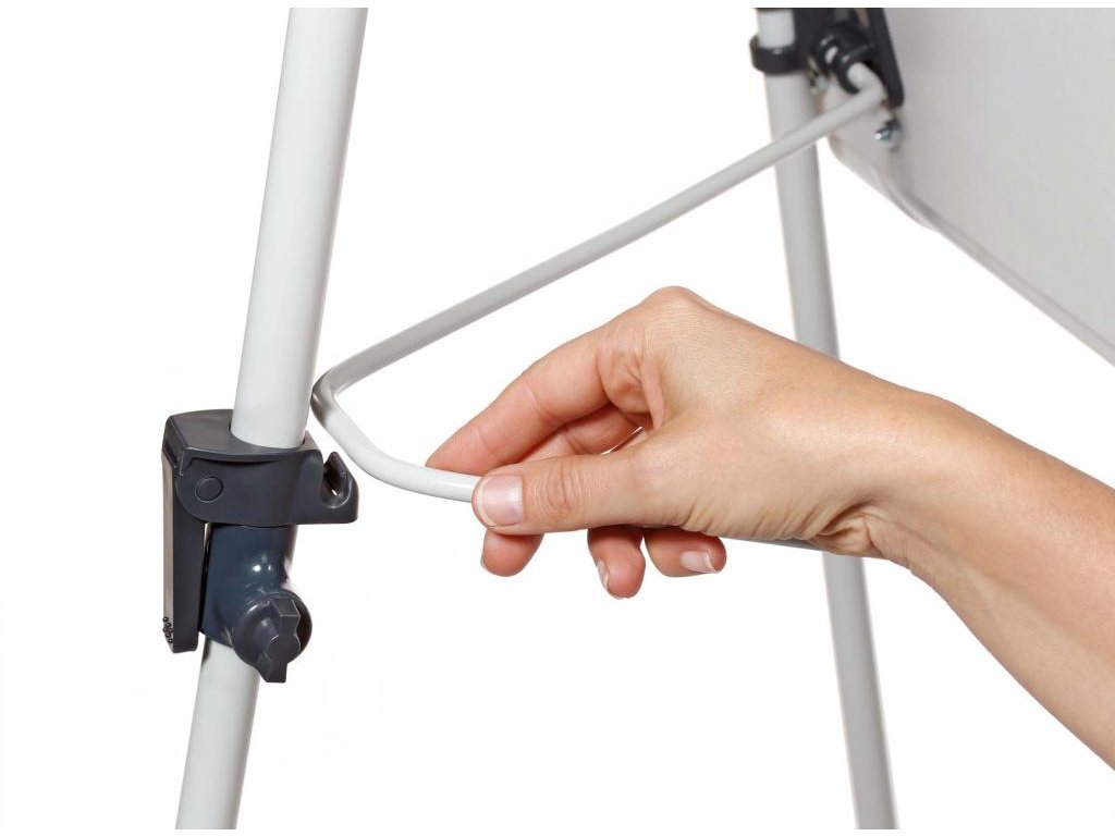 Trojnohý magnetický flipchart s nastaviteľnou výškou, vhodný na všetky dostupné papierové bloky. Sklápací držiak papierových blokov, odkladacia lišta na popisovače po celej šírke tabule. Farba svetlosivá.Dodatočné parametre