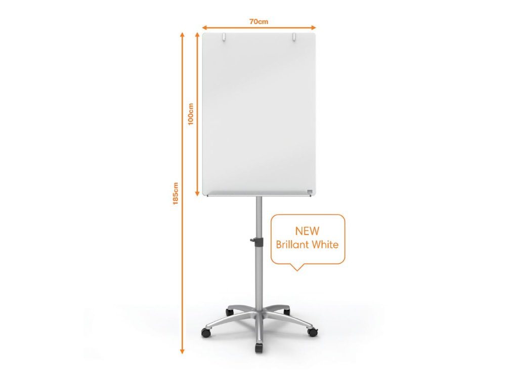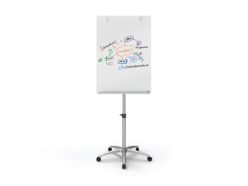 Na sklenený flipchart Nobo sa vojdú všetky vaše nápady! Štýlový moderný dizajn a výškovo nastaviteľná základňa na kolieskach sa hodí do každej zasadacej miestnosti a kancelárie. Obsahuje háčiky na zavesenie flipchart blokov. Magnetický sklenený povrch zaručuje najlepšiu možnú mazateľnosť a je vhodný na každodenné používanie. Rozmery 70 x 100 cm.Dodatočné parametre