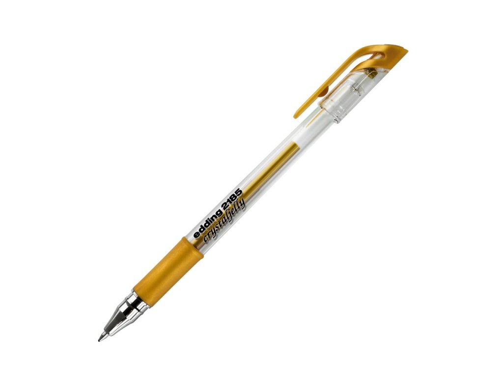 Jednorazový roller edding 2185 crystaljelly v metalizovaných farbách gélu, ktoré vyniknú najmä na tmavom papieri vďaka vynikajúcej krycej schopnosti. Šírka stopy 0,7 mm. Väčšie balenie 10 ks.Farba: zlatá.