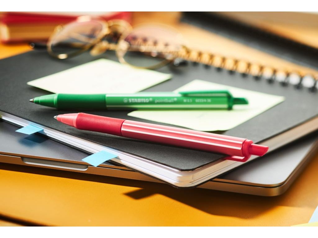 Vďaka svojmu farebnému dizajnu je STABILO pointball colorful sviežim a moderným doplnkom každého stola. Farebne odlíšené telo guľôčkového pera zobrazuje farbu atramentu - už žiadne hádanie, akou farbou píše. Je to skvelý nástroj na rýchle písanie, pretože kvalitný atrament v guľôčkovom pere zaisťuje hladký a rovnomerný tok so šírkou čiary 0,5 mm. Mäkká zóna úchopu poskytuje pohodlné uchopenie aj pri dlhšom písaní. Okrem toho má výrobok certifikát ISCC PLUS, pretože 87 % plastov na biologickej báze použitých na výrobu tela pera pochádza z udržateľných zdrojov (hmotnostná bilancia). Vďaka guľôčkovej náplni STABILO je možné farebnú guľôčku STABILO ľahko dopĺňať znova a znova.Dodatočné parametre