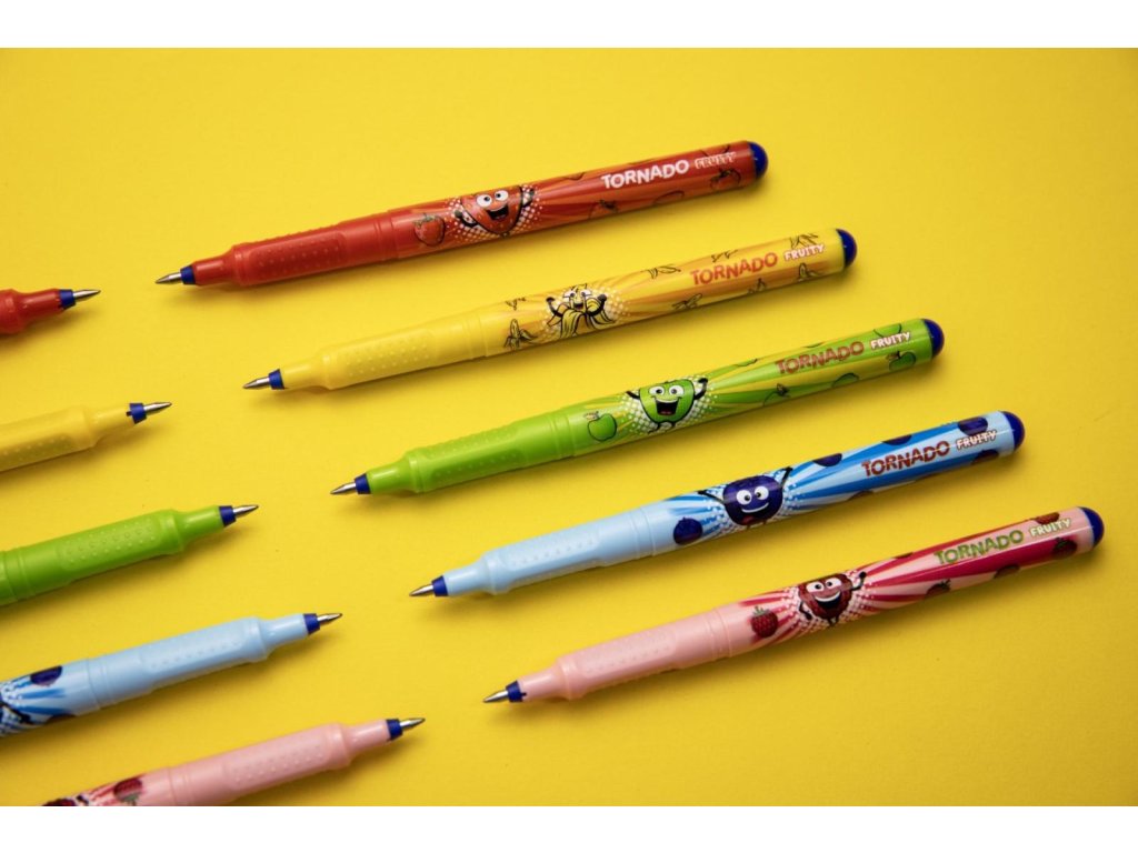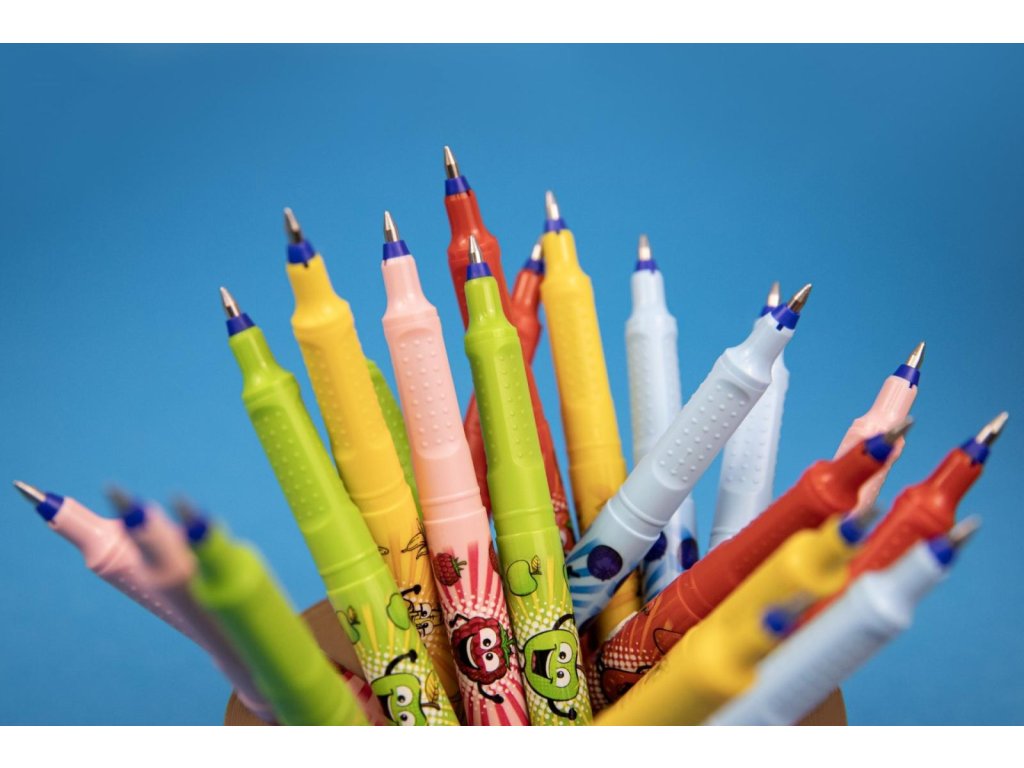 Roller pre školákov s ergonomickým držaním a masážnymi bodmi s modrým zmizíkovateľným a súčasne parfémovaným (banán, jablko, jahoda, malina, čučoriedka) atramentom. Pre ľavákov, pravákov i dysgrafikov. Šírka stopy 0,3 mm. Dodávaný v displeji 5 x 4 ks.Dodatočné parametre