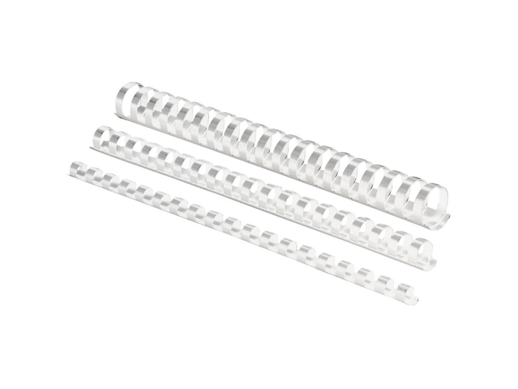 Plastové hrebene s 21 krúžkami, formát A4.Farba: biela