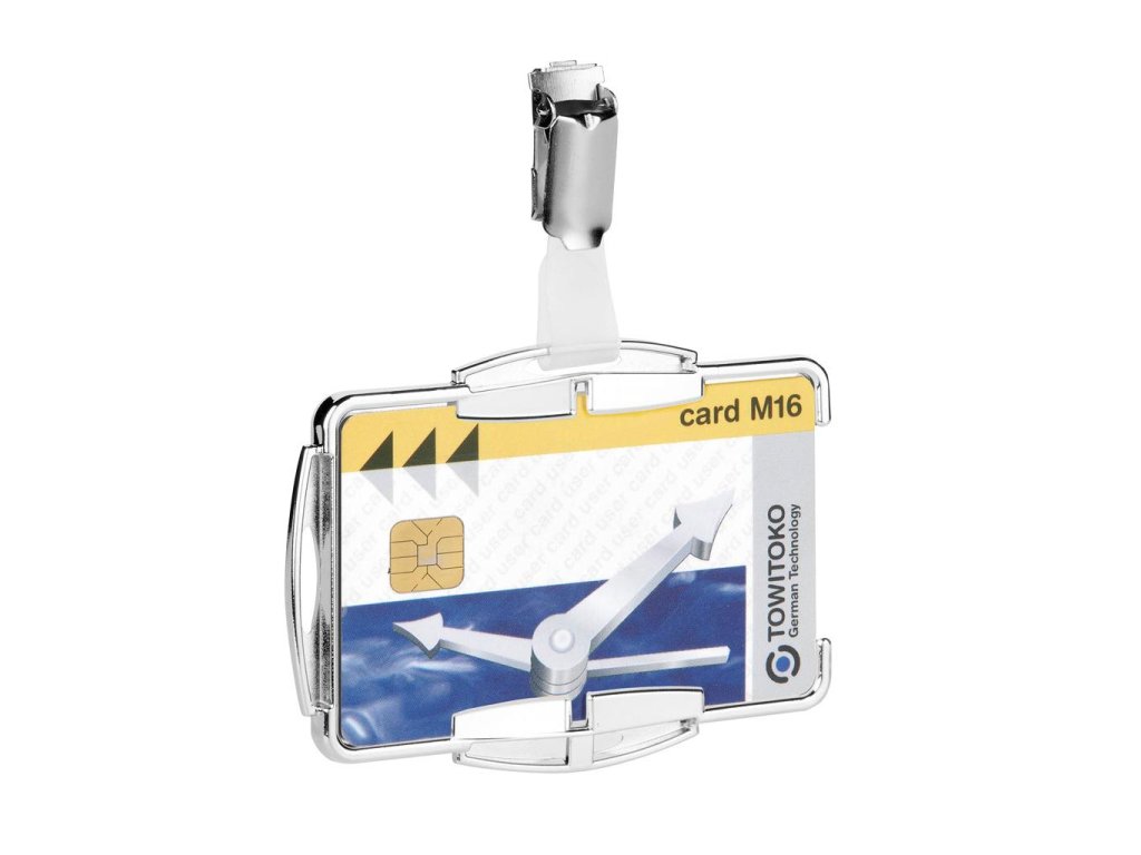 Pretože osobné údaje sú citlivé, je potrebná maximálna ochrana. Visačky, puzdro a obal ochraňujú RFID karty pred neoprávneným čítaním osobných údajov.Otvorená verzia visačiek v atraktívnom dizajne vhodná pre 1 RFID kartu. Otočný klip, možnosť použitia visačky na výšku alebo na šírku. Kombinovateľné s retiazkou, textilným remienkom alebo výsuvnýmkotúčom. Vnútorné rozmery visačiek 87 × 54 mm. Balenie 10 ks.