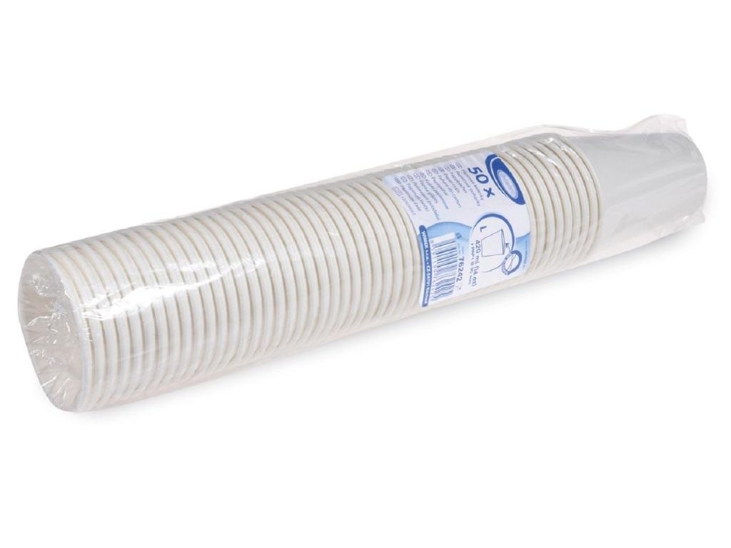 Jednorazové papierové poháre. Objem 420 ml, vhodné pre nápoje s objemom 0,3l, dodávané hygienicky balené po 50 ks. Farba biela.Dodatočné parametre