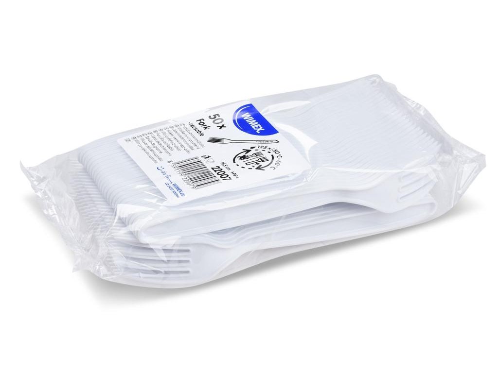 Vidličky plastové znovu použiteľné biele 18,5 cm (50 ks)