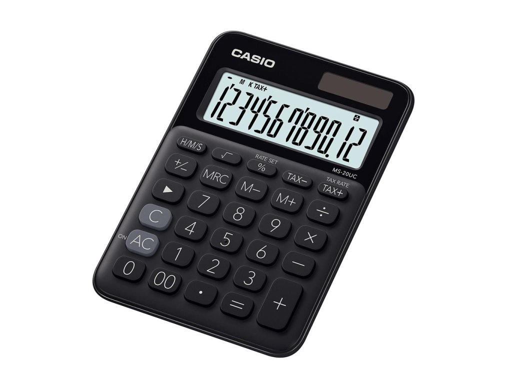 Kalkulačka Casio MS-20UC čierna + darček Batéria MAXELL zinkovo-mangánová AA (R6), 4 ks