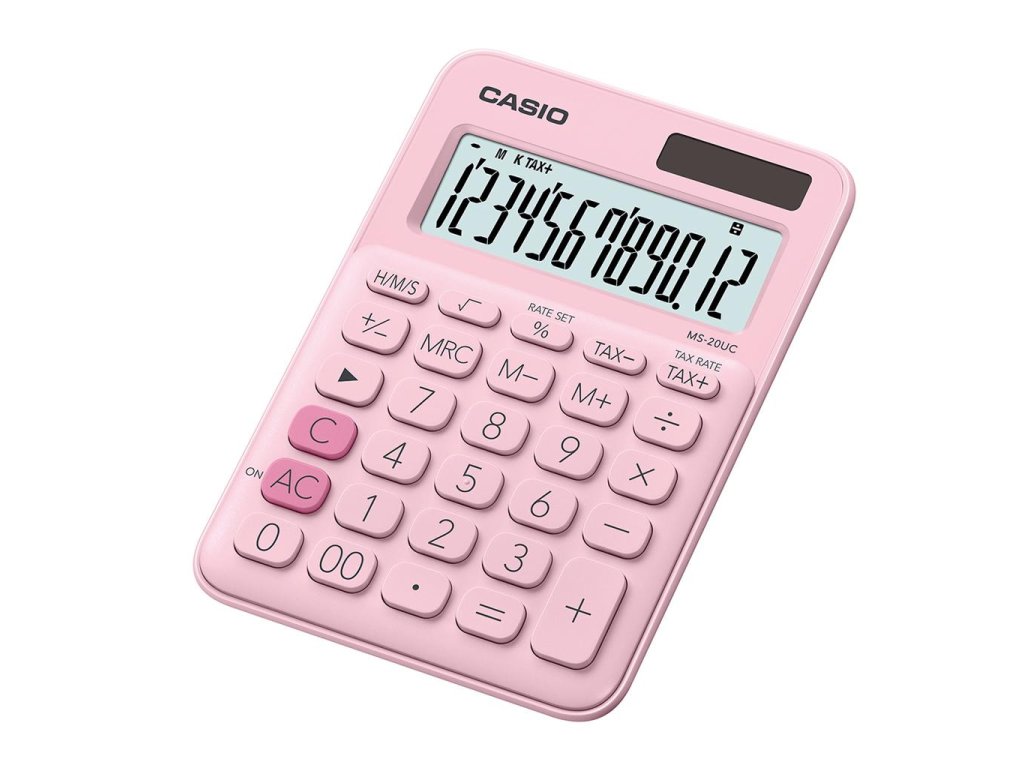 Kalkulačka Casio MS-20UC ružová + darček Batéria MAXELL zinkovo-mangánová AA (R6), 4 ks