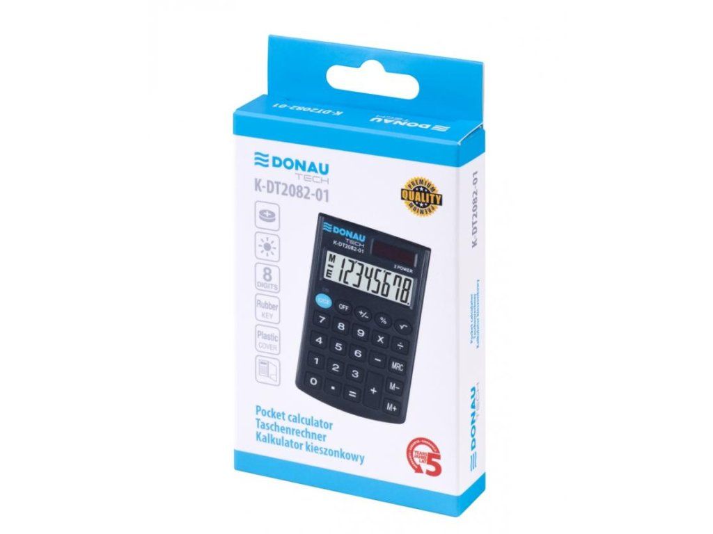 Kalkulačka s 8-miestnym displejom a gumenými tlačidlami. Farba čierna. Záruka 5 rokov.