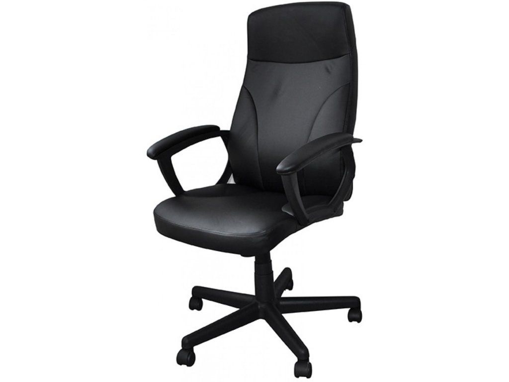 Kancelárska otočná stolička s hojdacím mechanizmom v čiernej ekokoži.