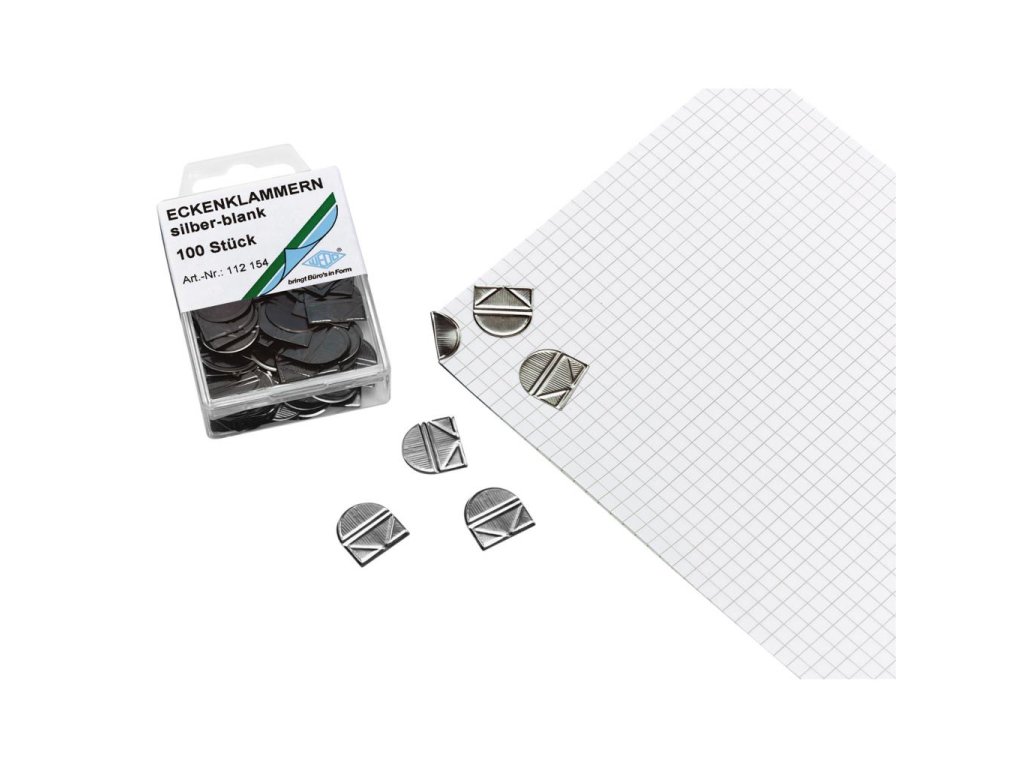 Spony z lešteného kovu na rýchle a ľahké zopnutie materiálu v jednom z rohov. Kapacita 2 - 10 listov. Balenie 100 ks.