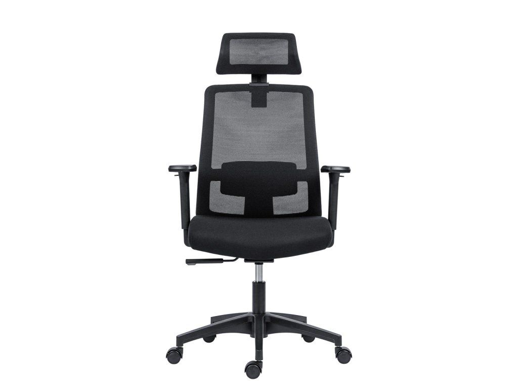 • kancelárska stolička so sieťou na operadle a podhlavníku