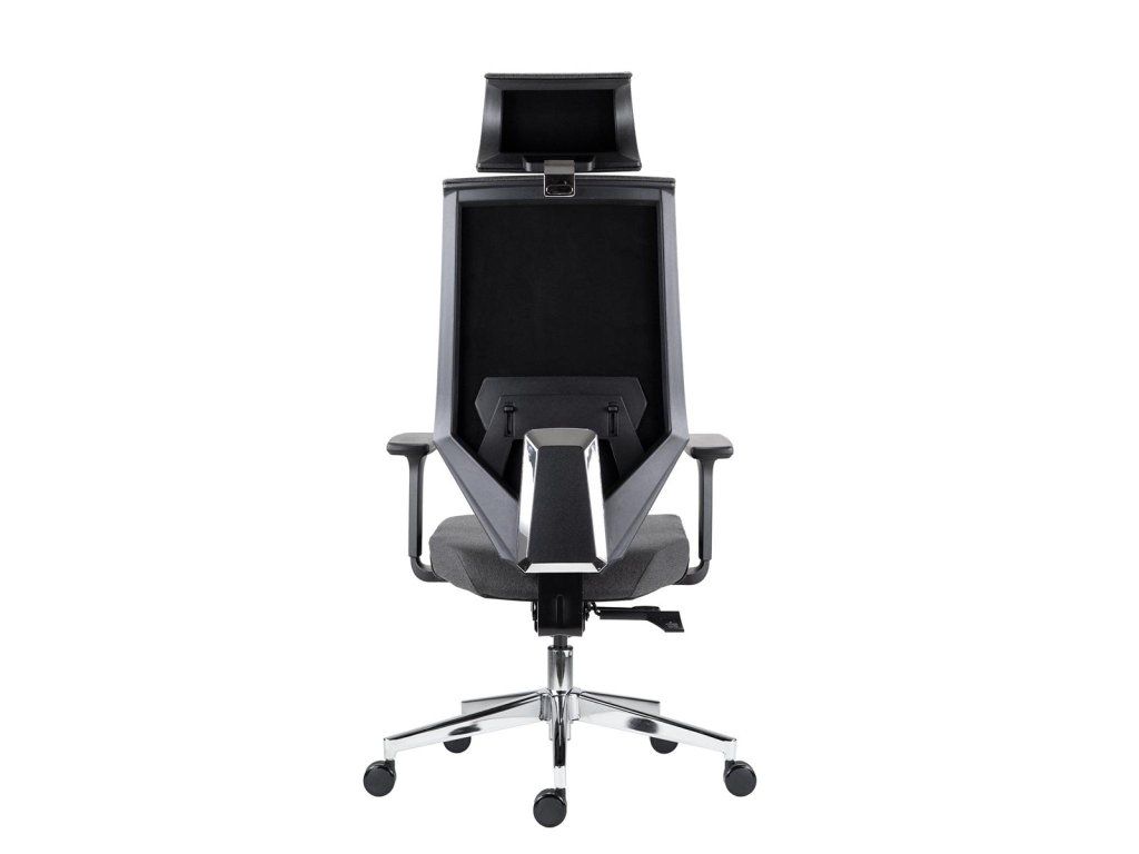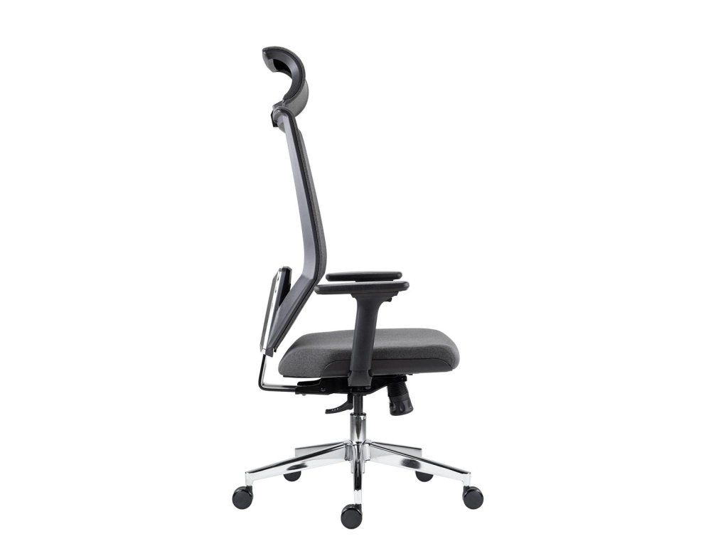 Kancelárska stolička čalúnená s uhlovo nastaviteľným podhlavníkom.