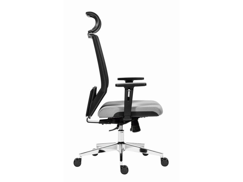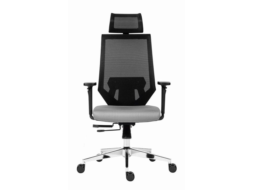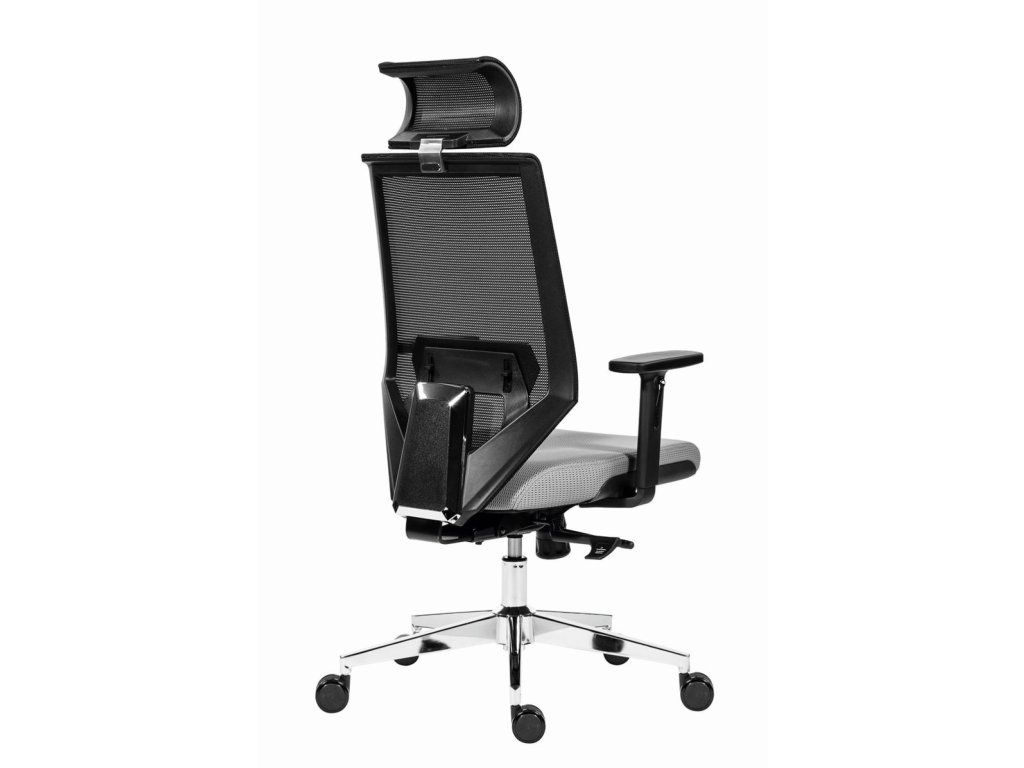 Kancelárska stolička so sieťovaným operadlom a uhlovo nastaviteľným podhlavníkom.