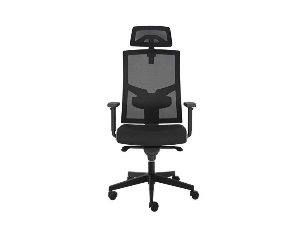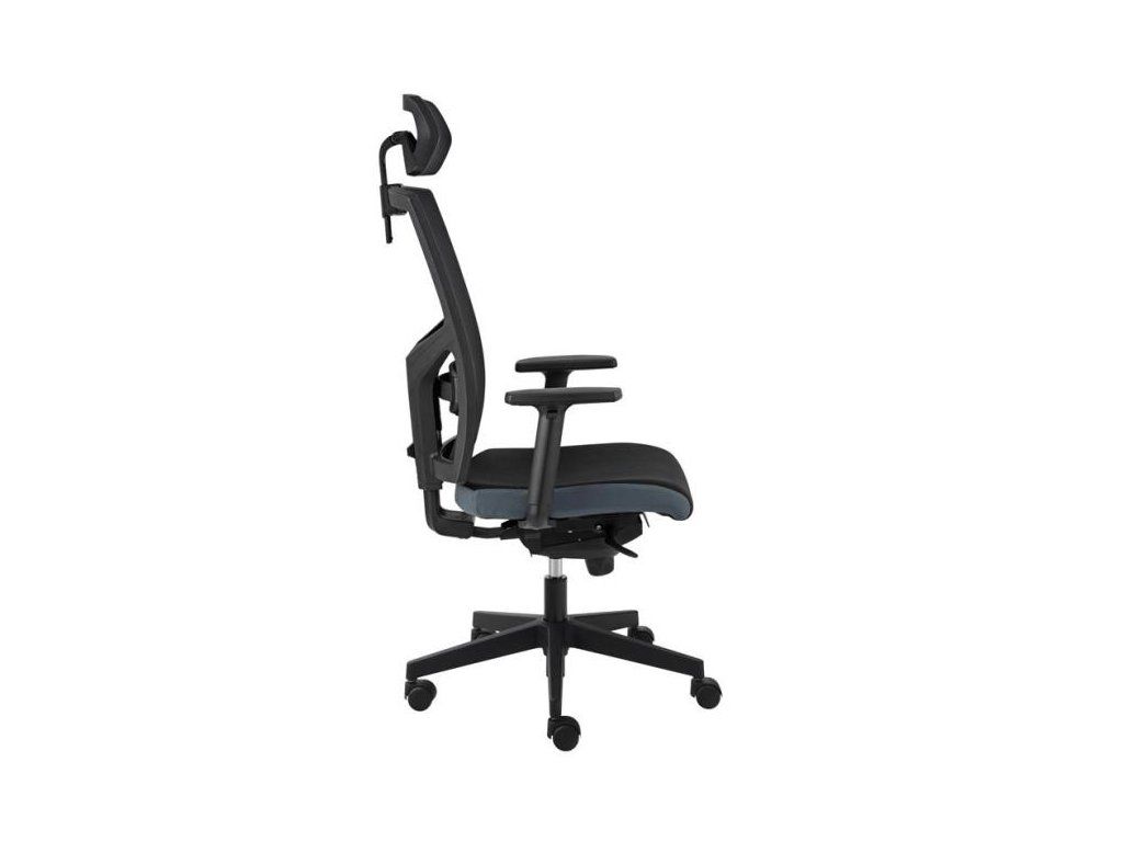 Kancelárska stolička vyššej kategórie z radu GAME s výškovo nastaviteľným čiernym sieťovaným operadlom s mechanickým zámkom a samostatne výškovo nastaviteľnou bedrovou opierkou.V prípade dovybavenia modelu pevným podhlavníkom má podhlavník v základnom prevedení farbu sedadla (vrchnej časti).