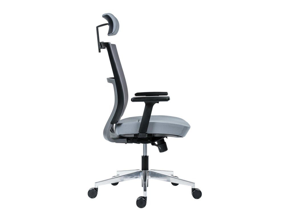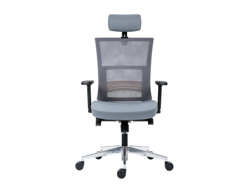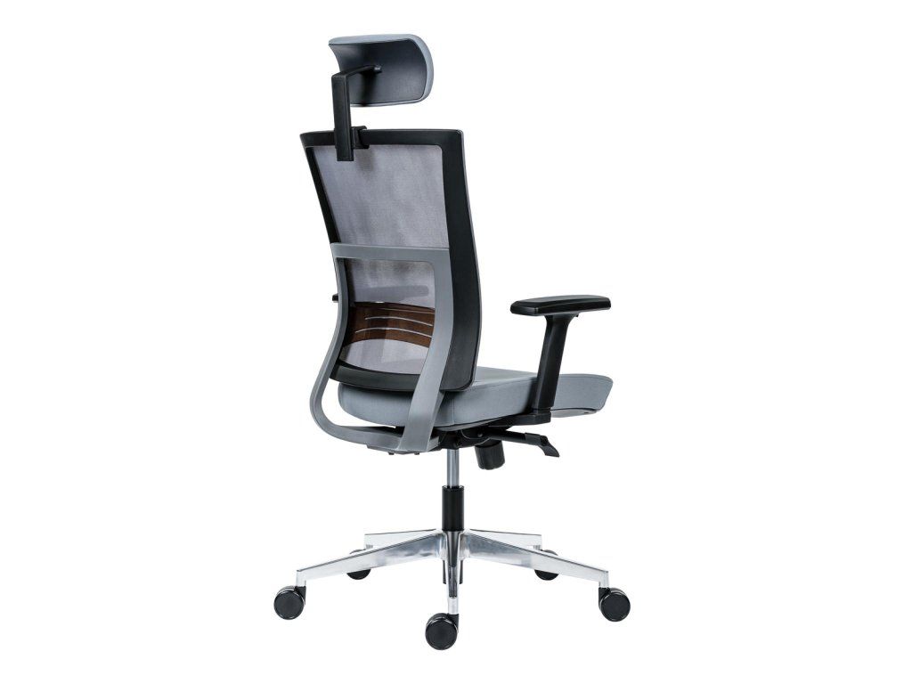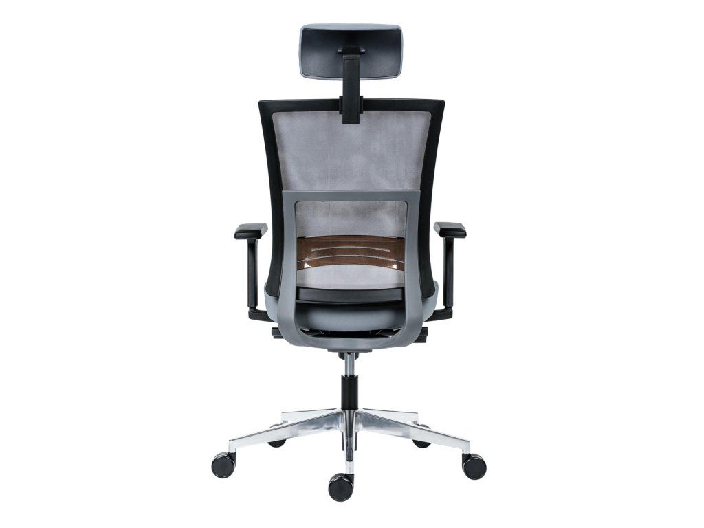 • kancelárska stolička s vysokým priedušným operadlom, opierkou hlavy, podrúčkami a molitánom sedáku zo studenej peny, synchrónny mechanizmus s nastavením sily protiváhy